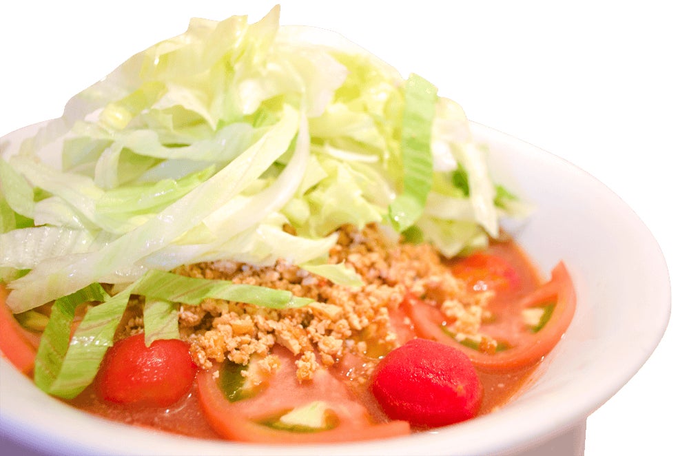 トマトラーメンは、まだ世の中にトマトラーメンがない時代に、冬春トマト生産日本一である八代の規格外トマトを有効活用できないかと、まだ世の中にトマトラーメンが浸透していない時代に、地域の生産者様と共に「この街の宝を活かしたい」という一心で開発したものです。