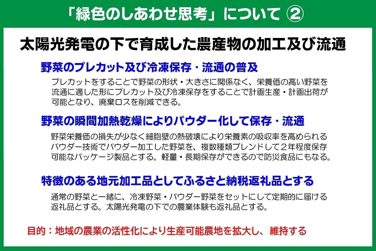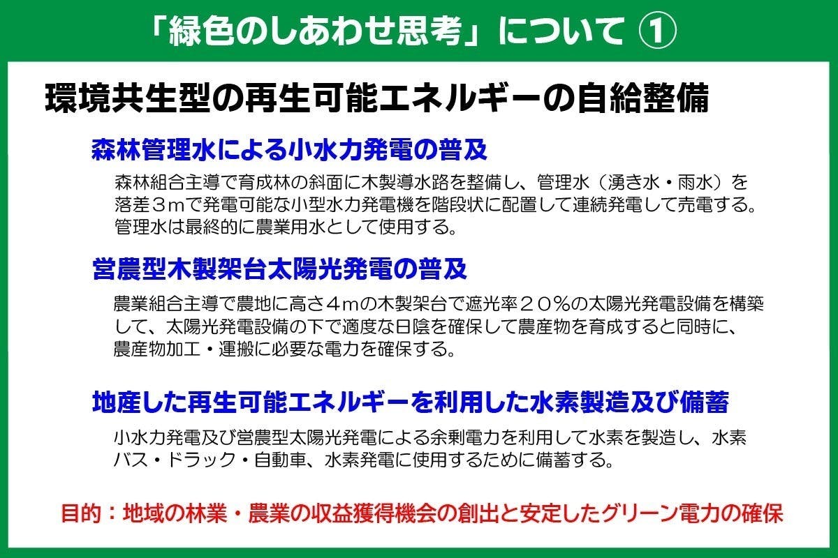 そこで私たちは、「緑色のしあわせ思考のすすめ」という提言書を作成し、首都圏近郊の市区町村長・地方議会議員の皆さまへ直接お届けしたいと考えました。
