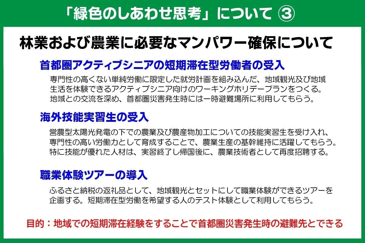 首都圏1500人へ届ける政策提言「緑色のしあわせ思考のすすめ」