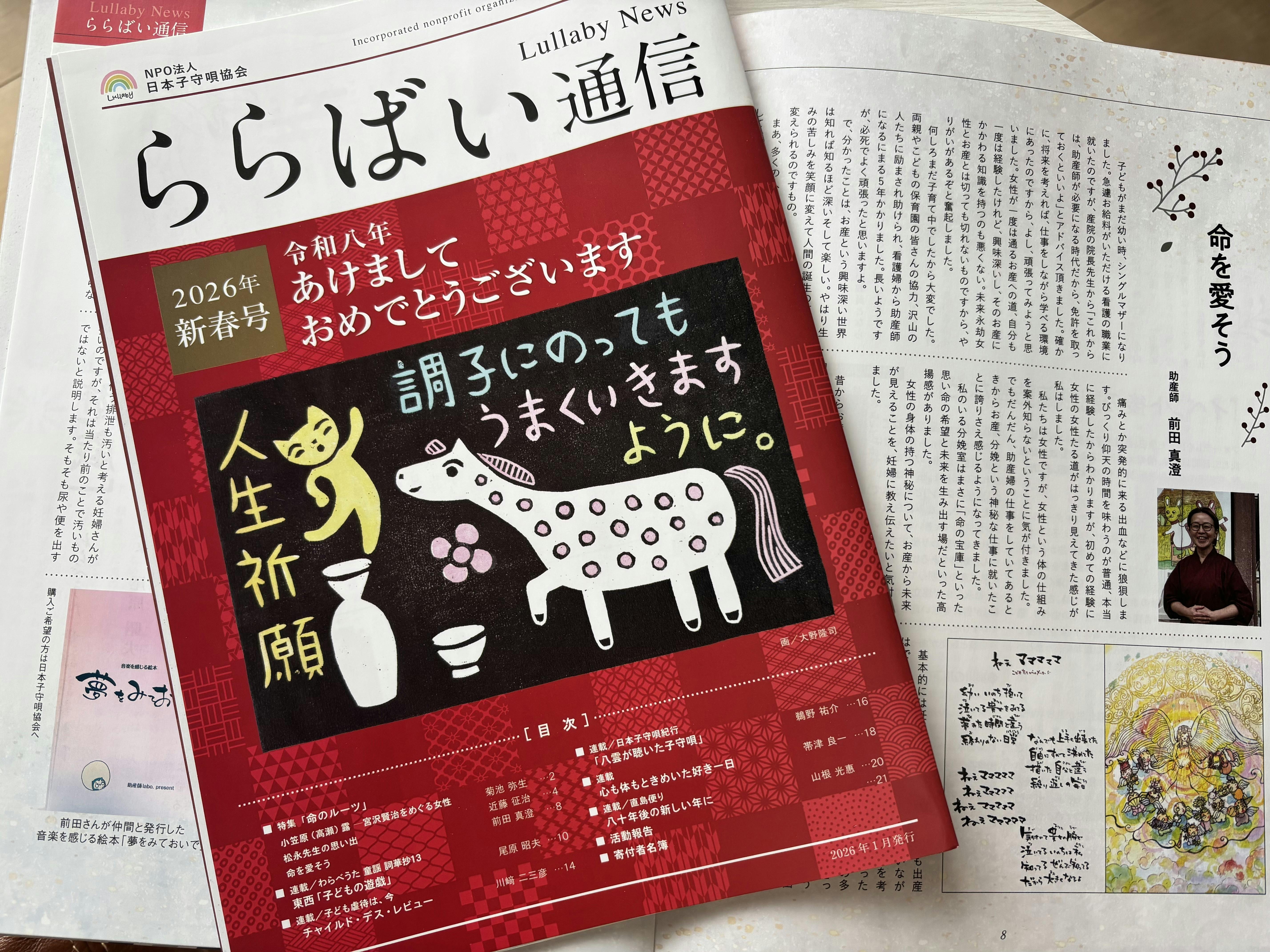 日本子守唄協会の会報(ららばい通信・2026年新年号)では、インタビュー記事を見開きで掲載していただくなど、このプロジェクトは今、個人の挑戦を超えて、日本の文化を未来へ繋ぐ流れの中に置いていただいています。