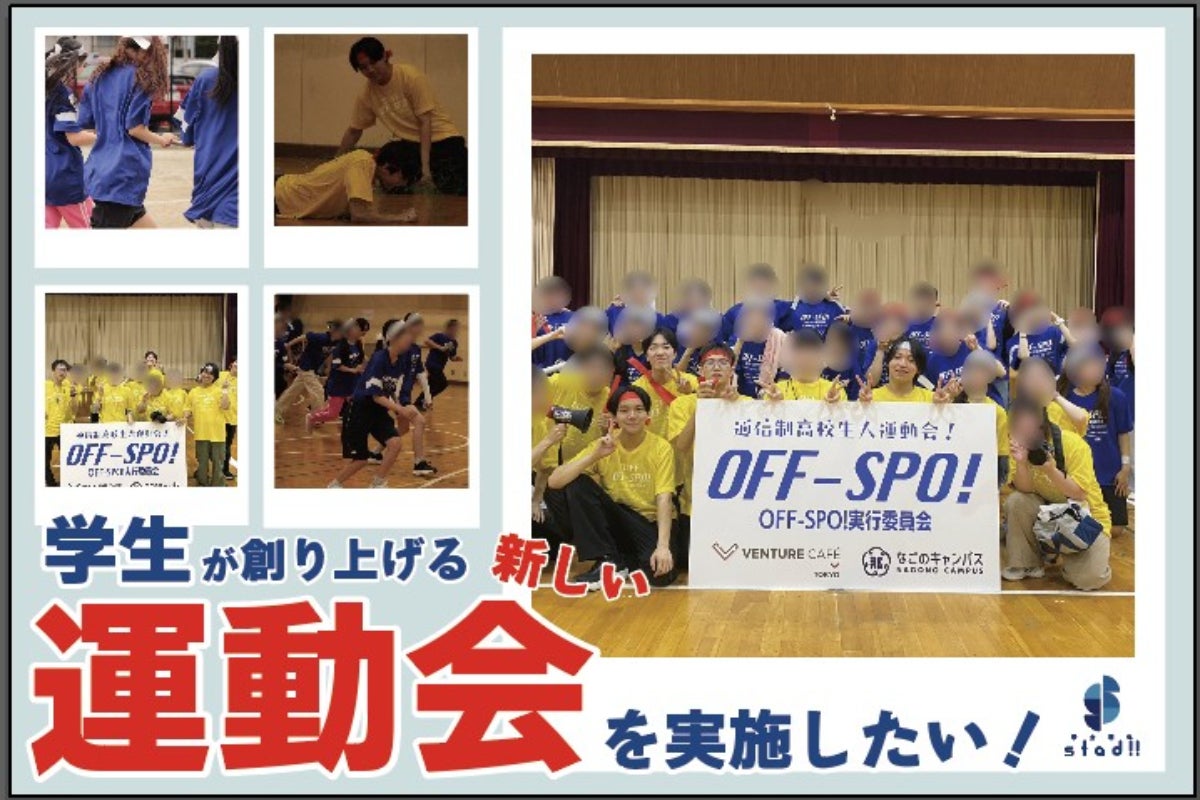 学生団体stad!!です。これまで私たちは、2025年7月に新時代の人材の育成を目的とした教育イベント「とっきんとっきんアクション」を、2025年10月に通信制高校生を対象とした運動会イベント「off-spo!」を企画・運営してきました。どちらのイベントも団体員や、団体関係者の「やりたい」を実現してきたイベントです。今回開催する「stad!!運動会」も団体員の「やりたい」から生まれたイベントになります。「off-spo」では多くの参加者から「また参加したい」「初対面でも自然と仲良くなれた」といった声をいただきました。そんな声をもっと多くの人に届けたい、多くの人に体験してほしい、という思いから今回のイベントを実施する運びになりました。「off-spo」での経験を活かし、より多くの学生に「人とつながる楽しさ」を届けるため、私たちは動きます。