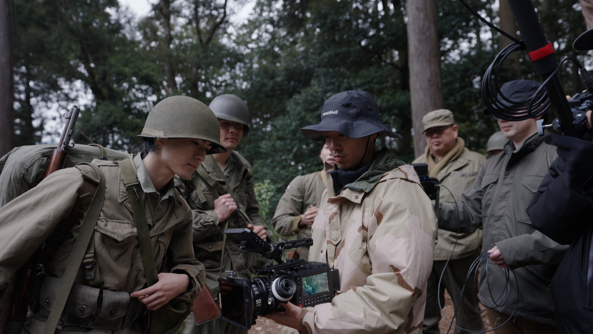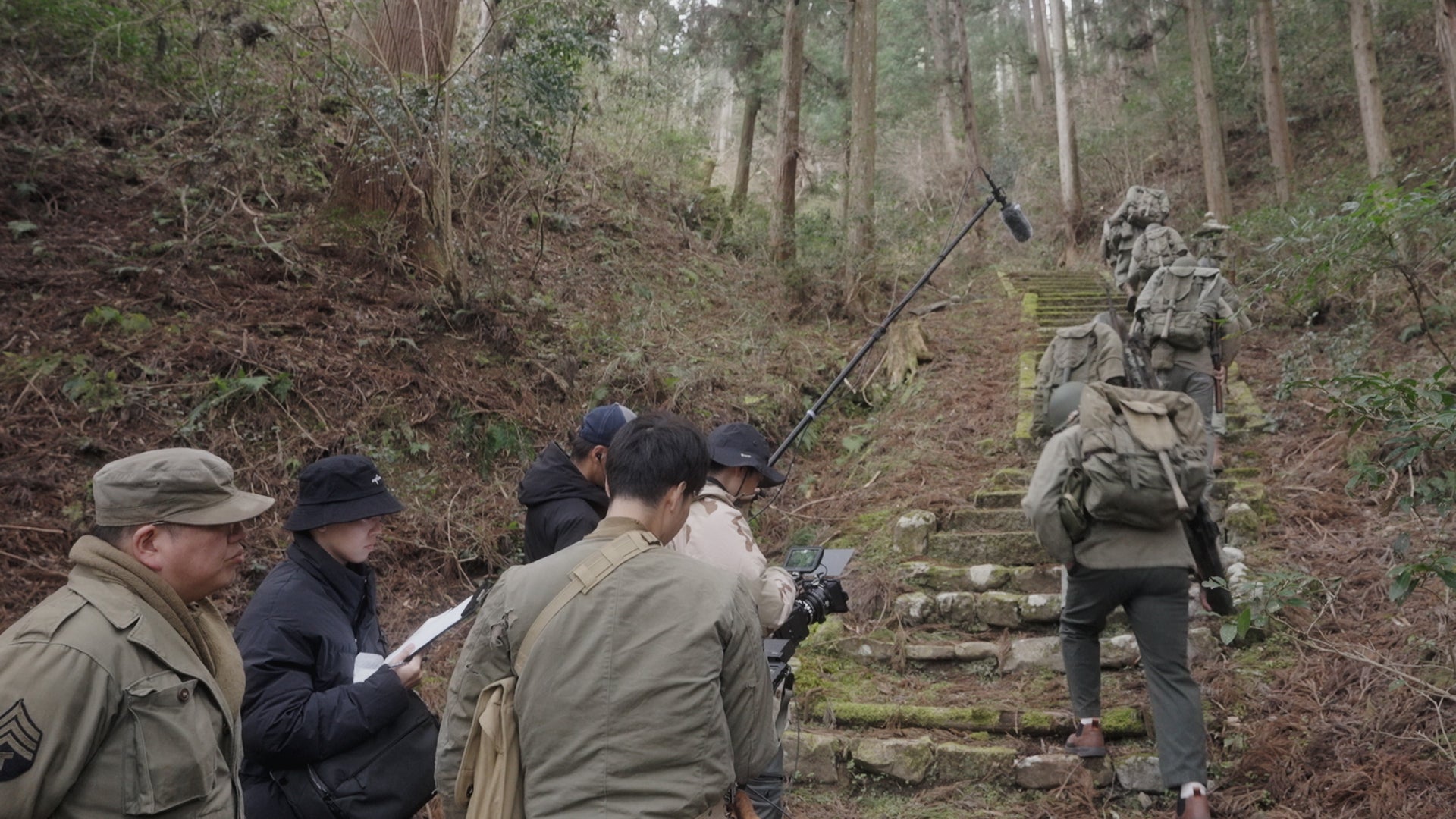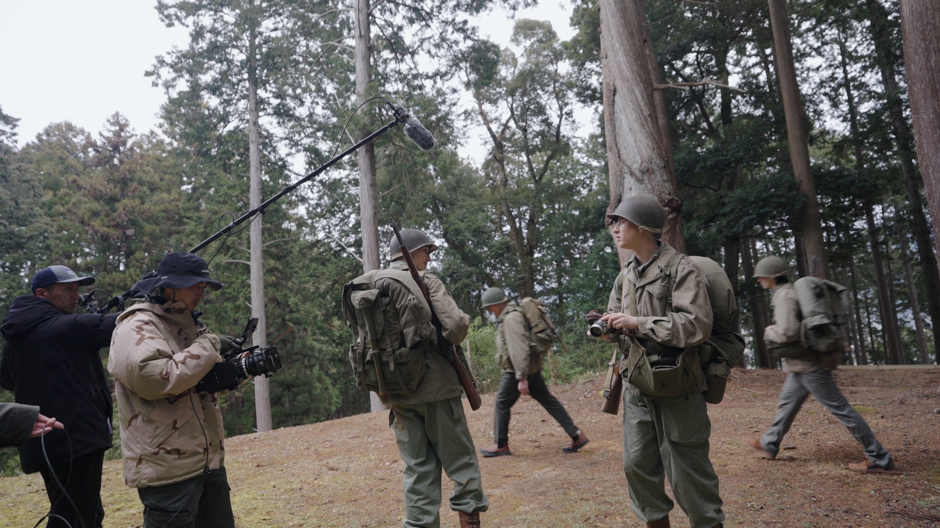 今回の撮影では、1940年代当時の実物という非常に貴重で高価な米軍装備を、有志の方々からお借りして臨んでいます。細部に至るまで本物ならではの重みと説得力があり、画面に映るリアリティが格段に高まっています。改めて、先任様には心より感謝申し上げます。