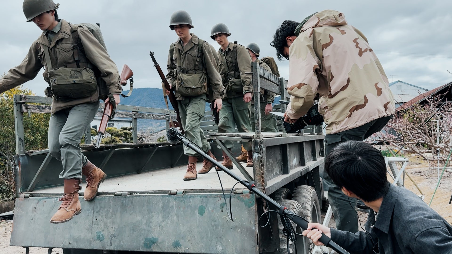 さらに、米軍の輸送トラックもお借りすることができ、シーン全体のスケール感が一気に広がりました。ご協力いただきました株式会社 志野造園土木様、誠にありがとうございます。