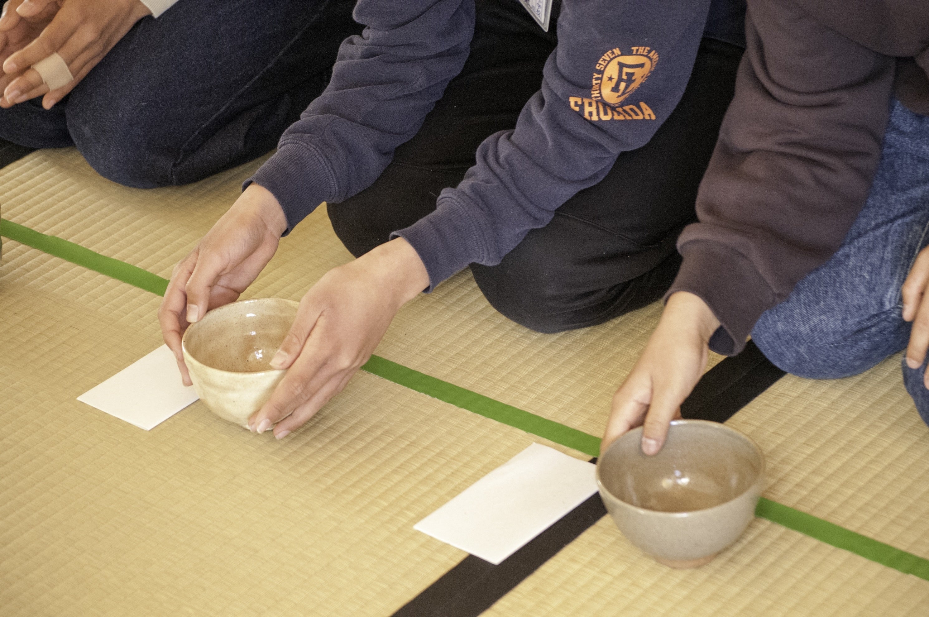 茶室という静かな空間で、子供たちがそっと背筋を伸ばし、目の前の一服に心を向ける時間。