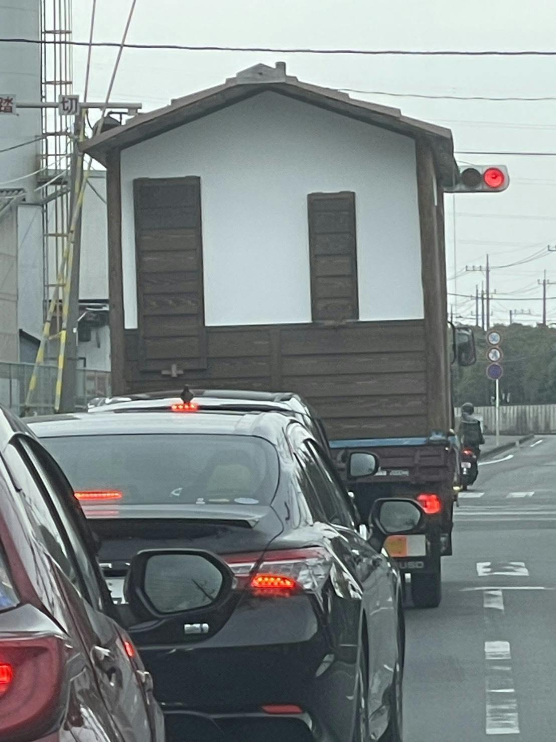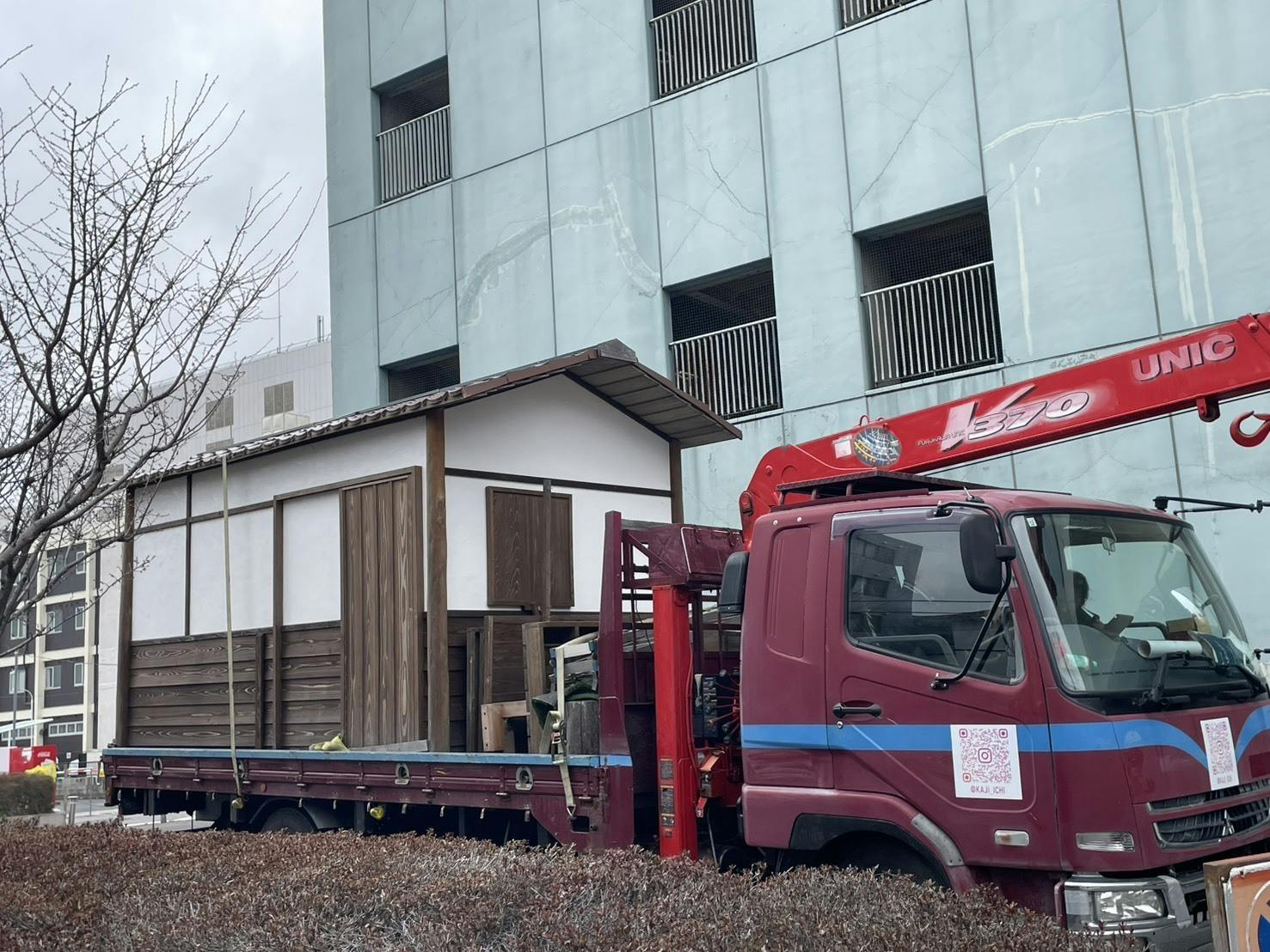 和の小屋がトラックに揺られているのはなんだか不思議です笑