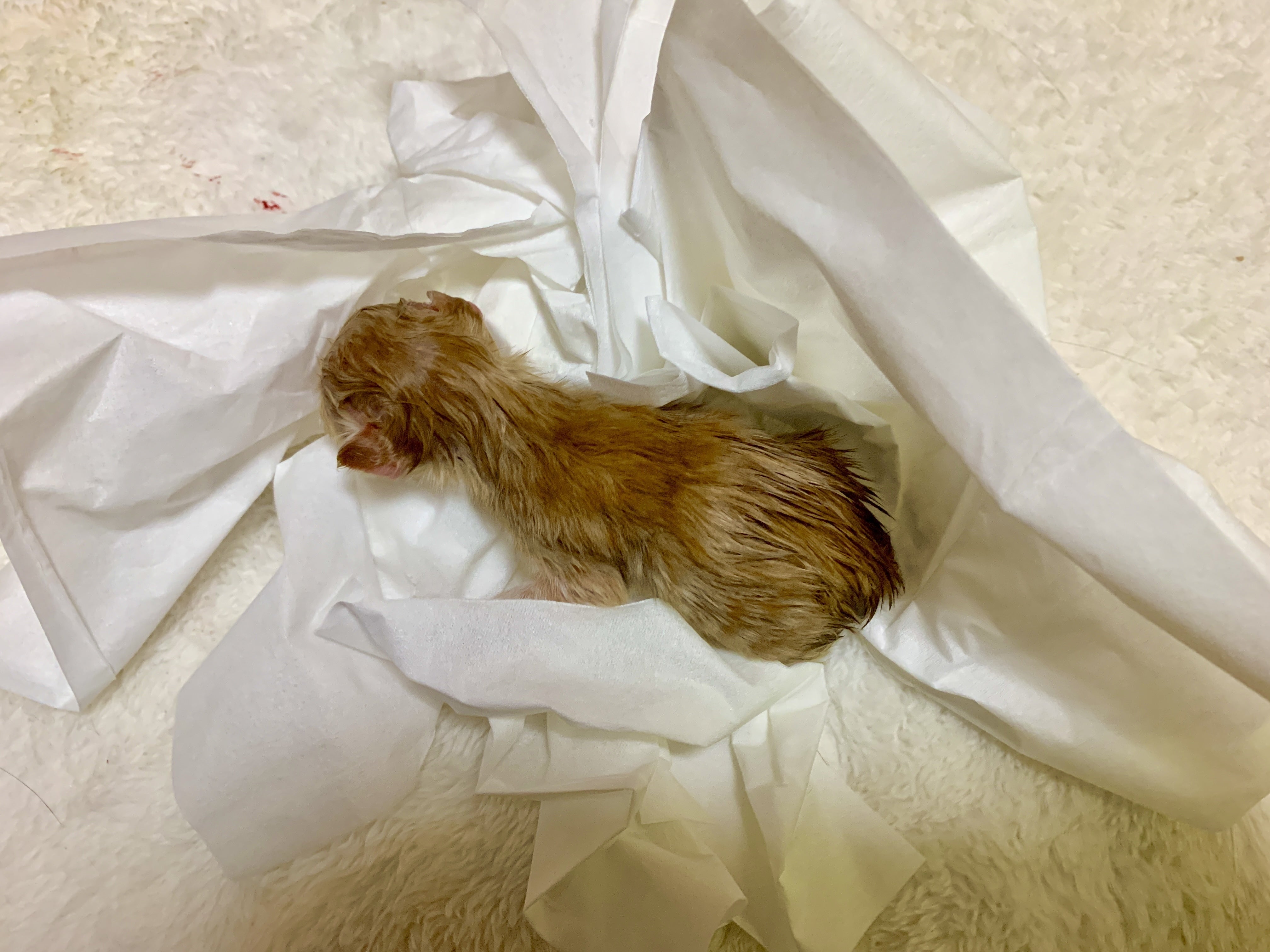 驚いてすぐにティッシュで体を拭くと、体は冷たくなっていましたが鳴き声をあげたので生きていることが分かりました。