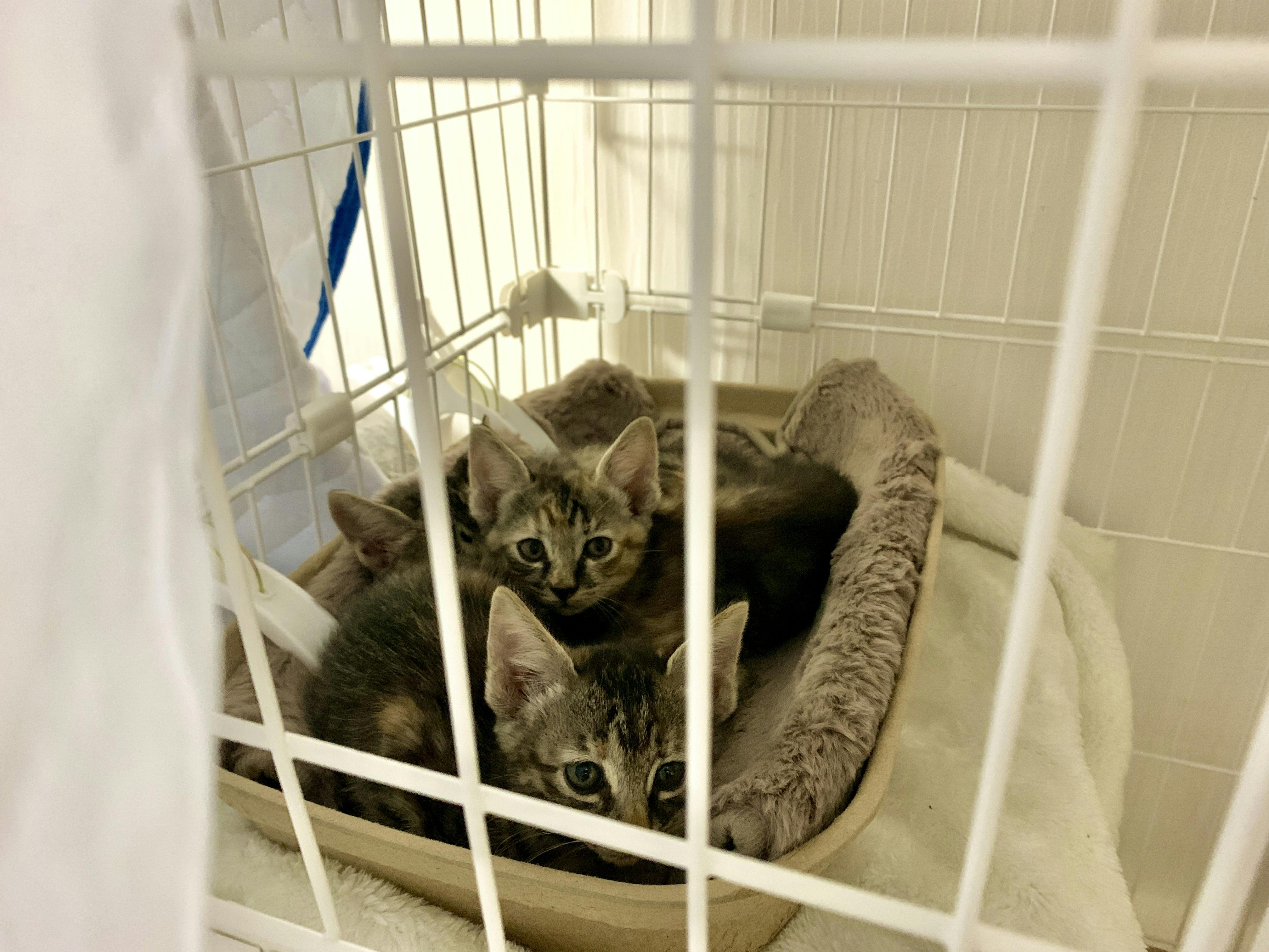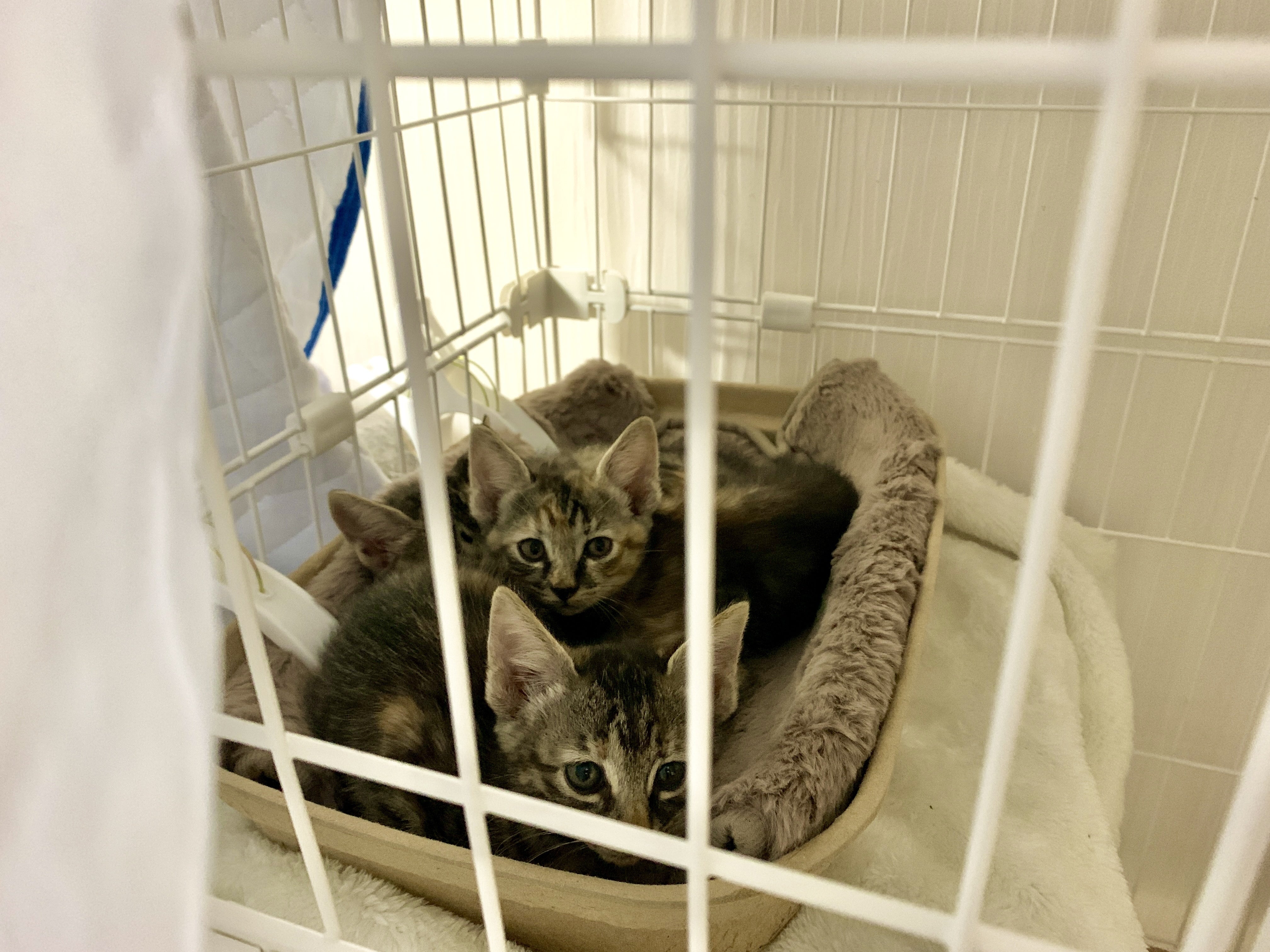 その場には母猫がおらず、誰の子か分からない状態でしたが、しばらく部屋から離れ待っているとサビ猫の風ちゃんが戻ってきたため、ひとまず安心しました。
