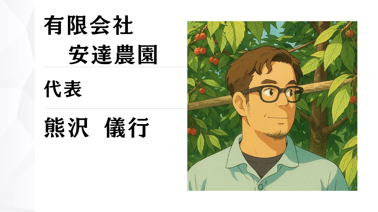 はじめまして。有限会社安達農園 代表の熊沢儀行です。