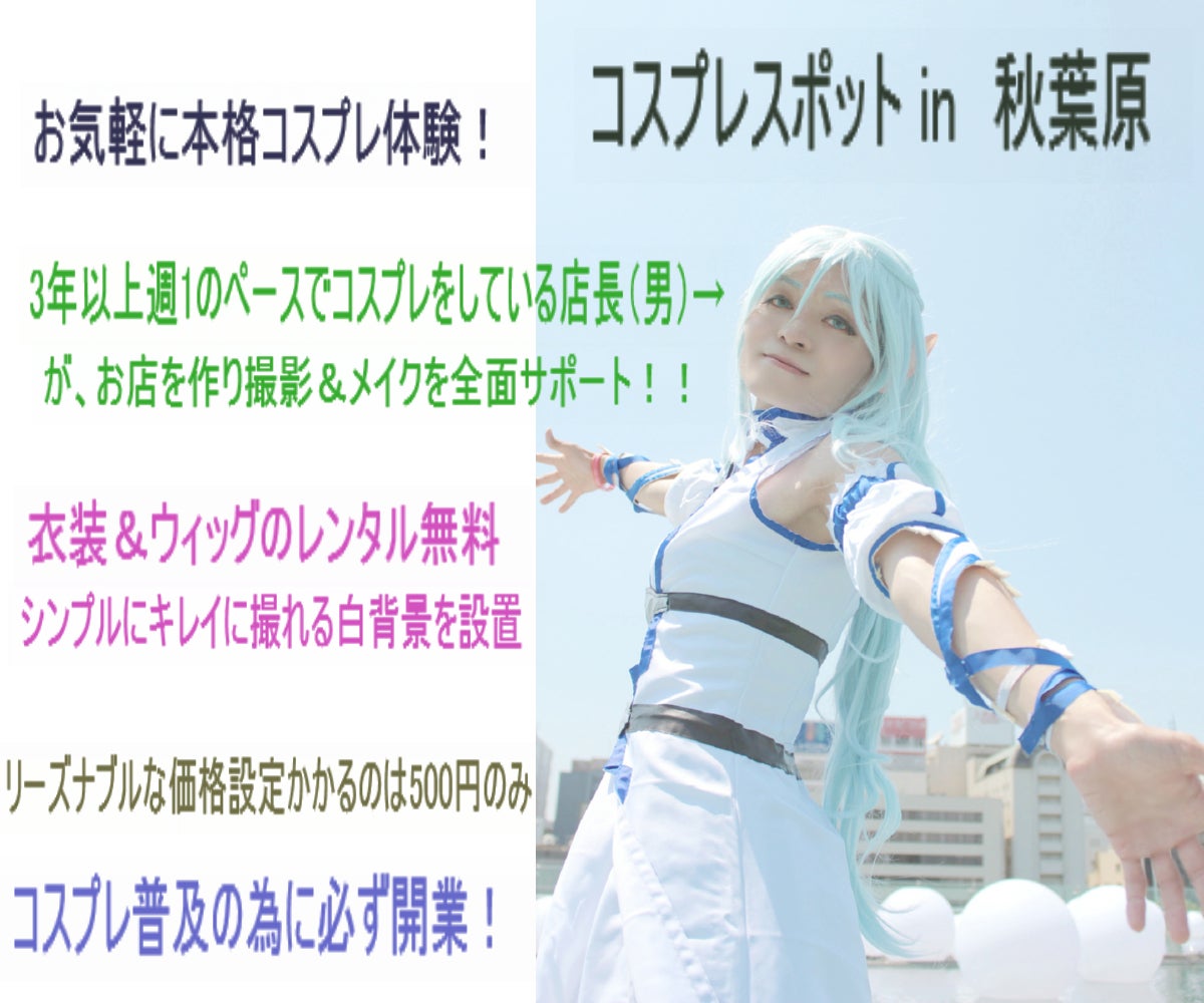 注意点ですが、コスプレを知って頂くのがメインで、営利目的の開業ではございません。