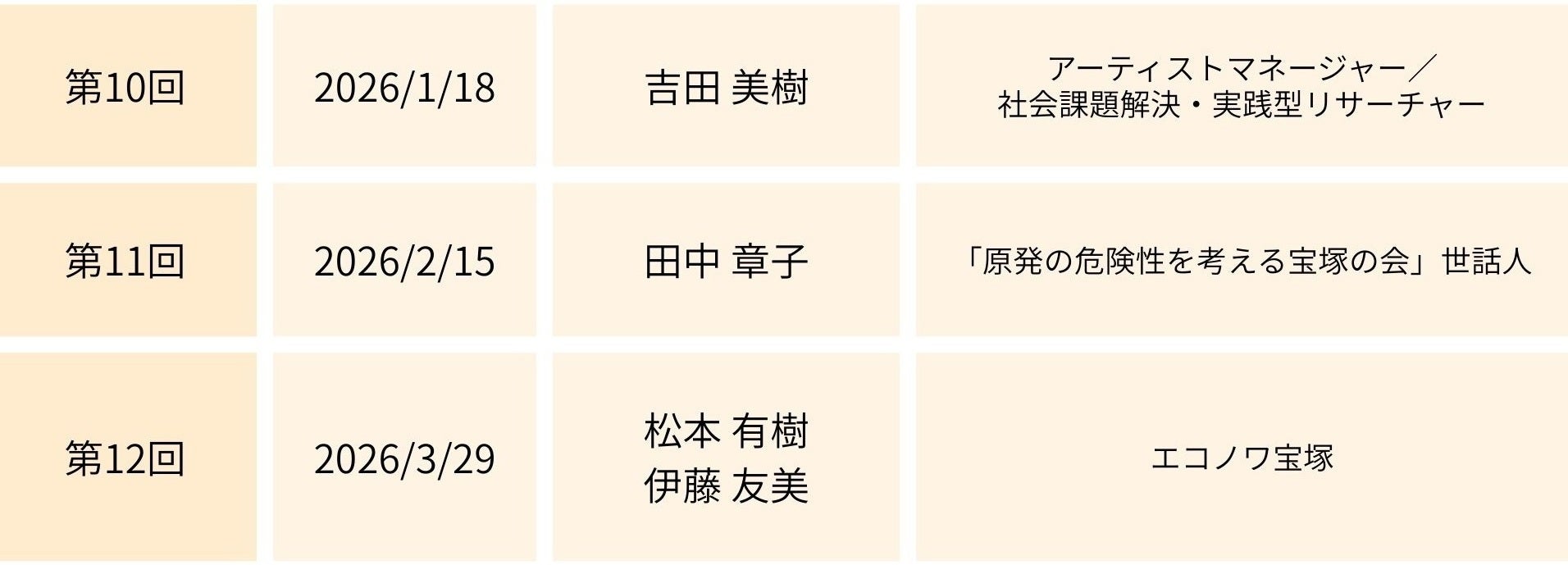 2026年4月26日(日) 「たからづかたがやす」第13回 開催予定