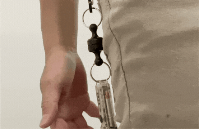 使いたい時に「1秒でパッと着脱」ができるので、普段はキーケースやバッグ、ベルトホルダーに付けておき、必要な状況で、迷わずサッと取り出せます。