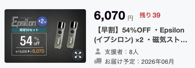 現在最もお得なリターンは【【早割】54%OFFのイプシロン2個セット】