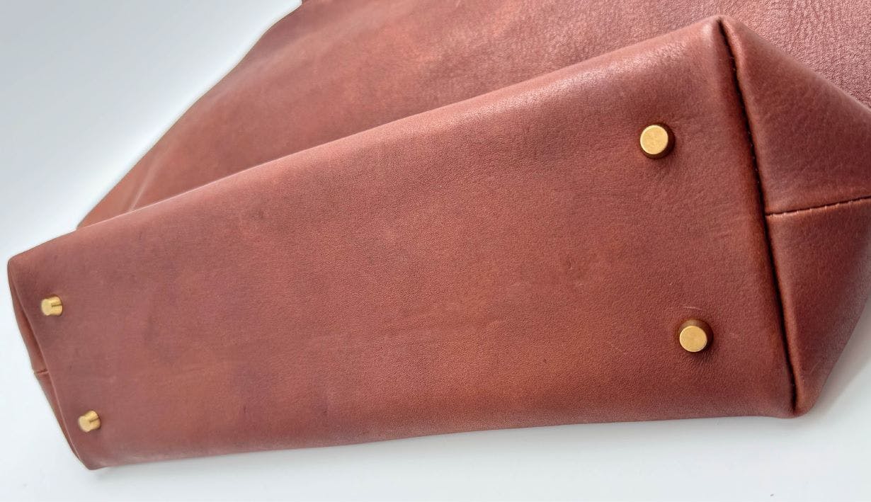 底に付いている底鋲は、擦れを軽減してくれたり、バッグの底が濡れてしまうのを防ぎます。また、底鋲が付いていることで、置いた時に「カチッ」と鳴る高級感を演出。