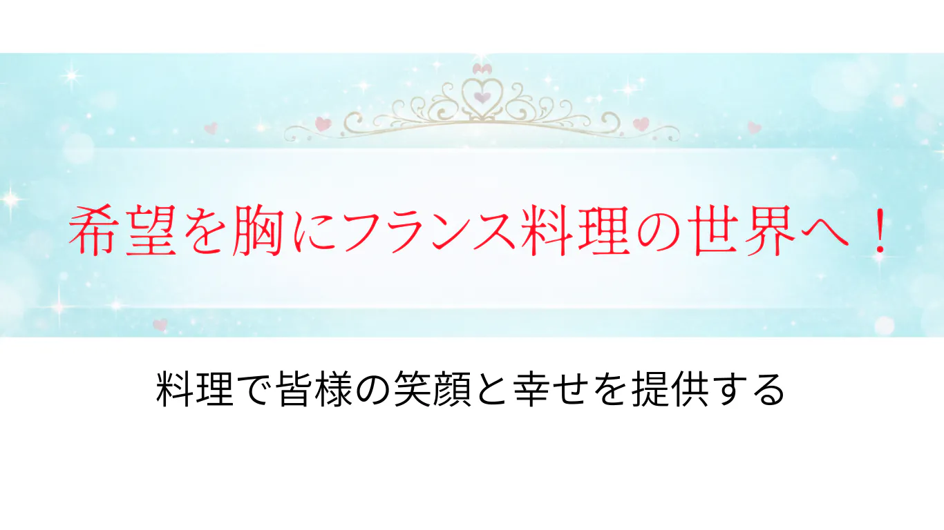 私の原点は、母の隣で夕食作りを手伝った幼少期にあります。「料理で人を幸せにしたい」と、18歳で調理専門学校へ。卒業後はホテルのフレンチの世界で、鍋の音やソースの香りに囲まれ、夢中で腕を磨いていました。