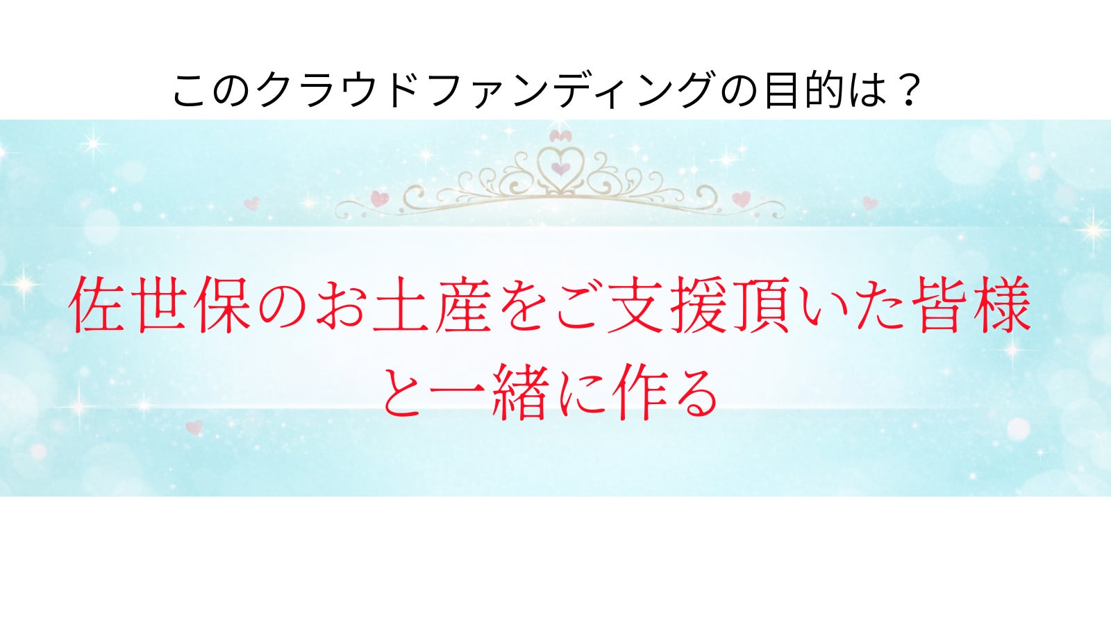 このプロジェクトを通じて、私たちの故郷である佐世保の魅力を全国に発信し、地域の未来を紡ぐ一助となりたいと考えています。皆様の温かいご支援とご協力を心よりお願い申し上げます。共に、佐世保を盛り上げ、未来へと繋げていけますよう、どうぞお力をお貸し下さい。