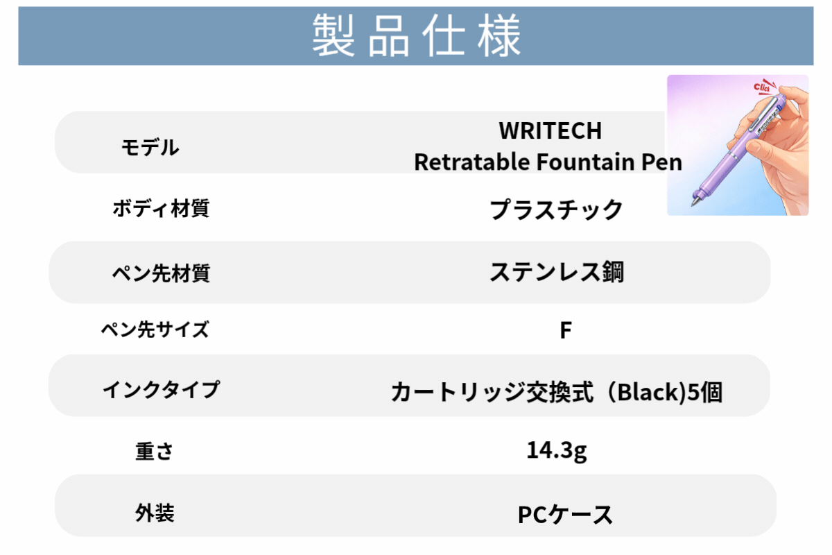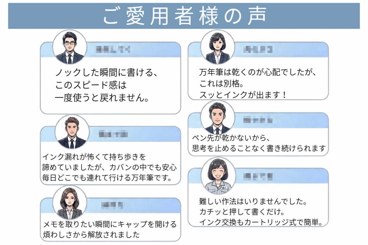 ノック一つで、あなたの思考が走り出す、ボールペンの速さで、万年筆の快感を!