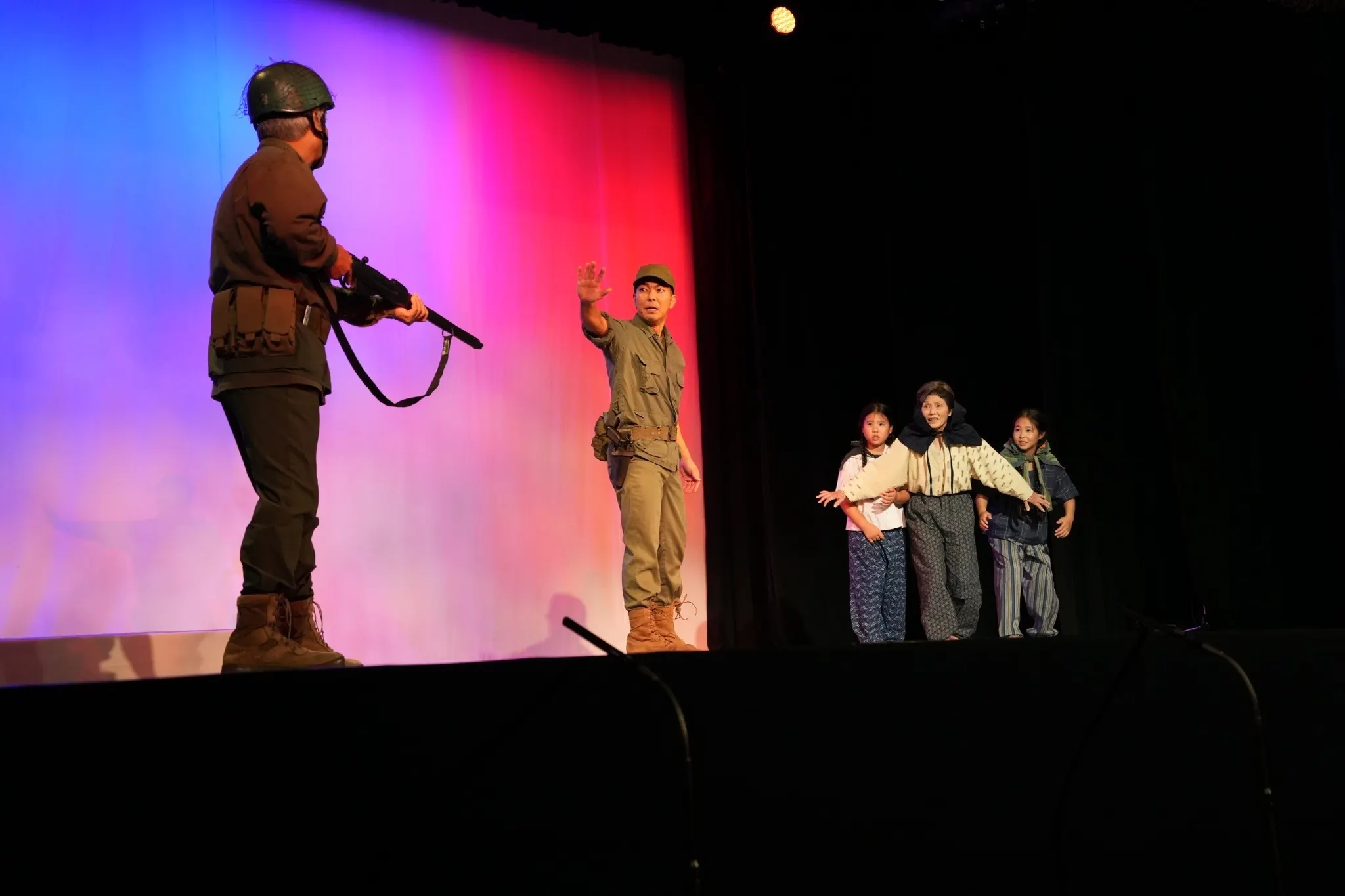 2025年11月、戦後80年、ハワイ移民125周年という節目に合わせて北中城中央公民館にて上演されました。