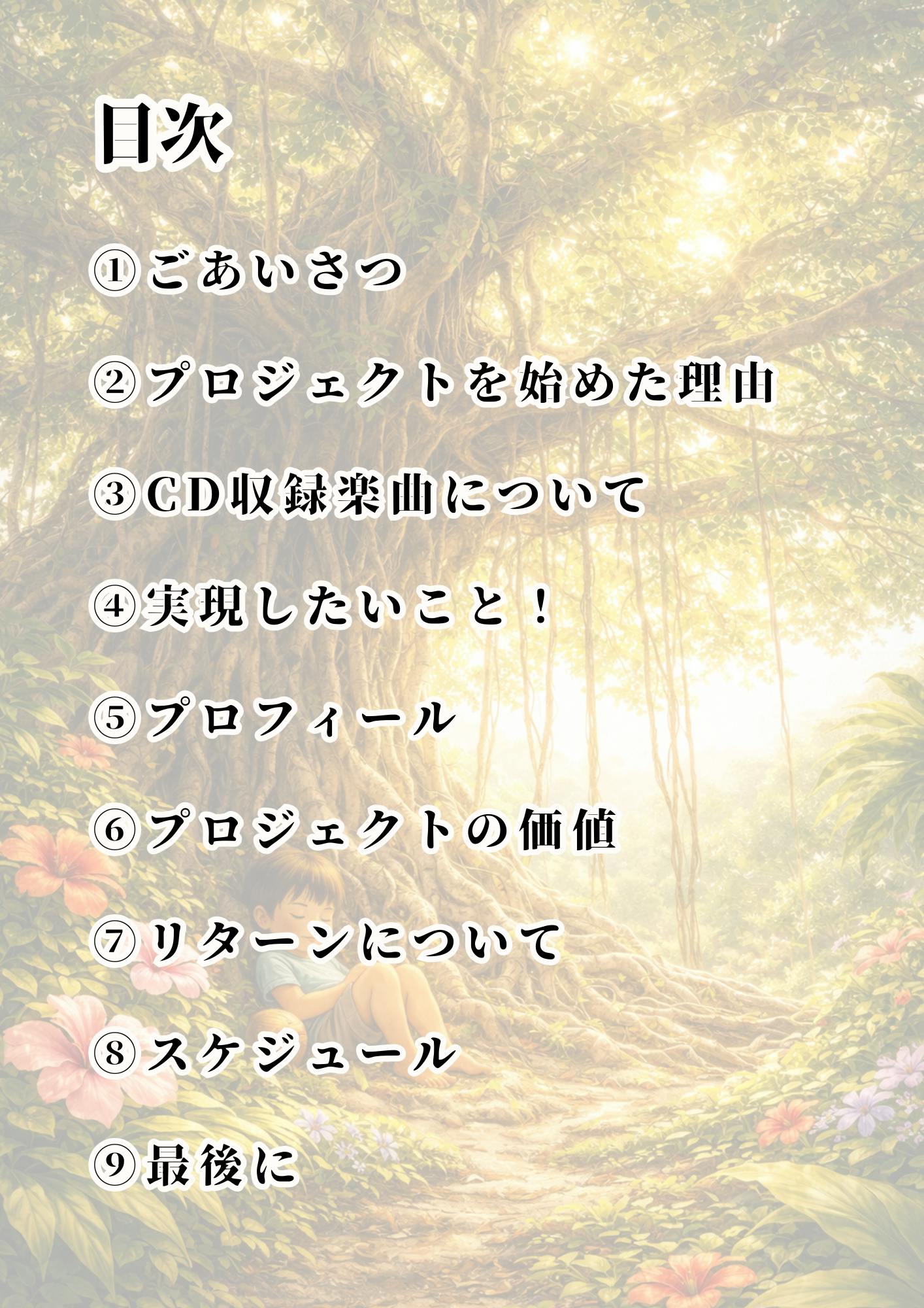 上記にも述べた通り、私たちは村民劇『比嘉太郎物語』のサウンドトラックCDを制作し、この物語と音楽をより多くの方々に届けたいと考えています。