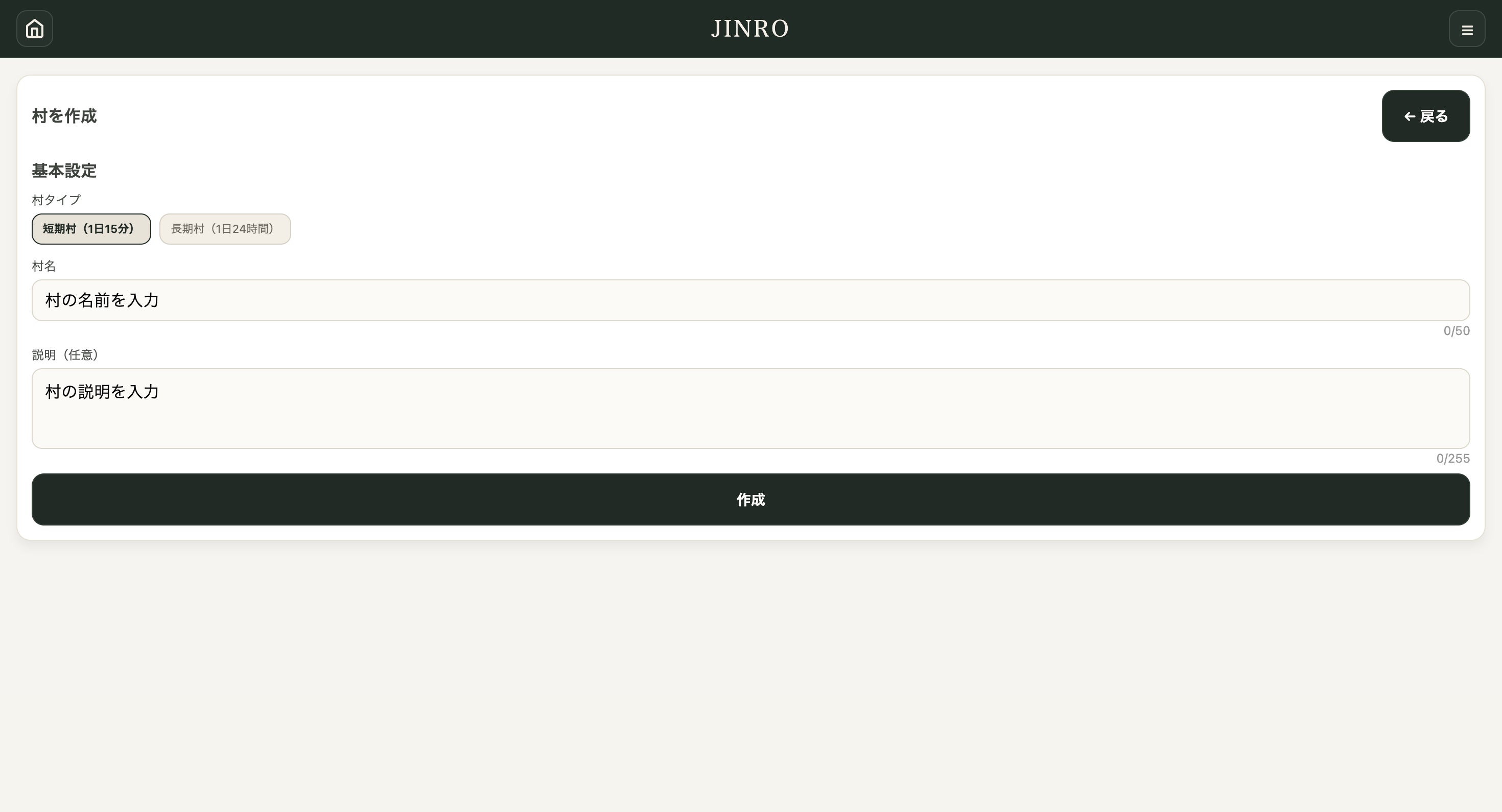 追加機能:・長期村モード(1日24時間 = 1ターン)・リアルタイム不要、好きなタイミングで発言・投票が可能