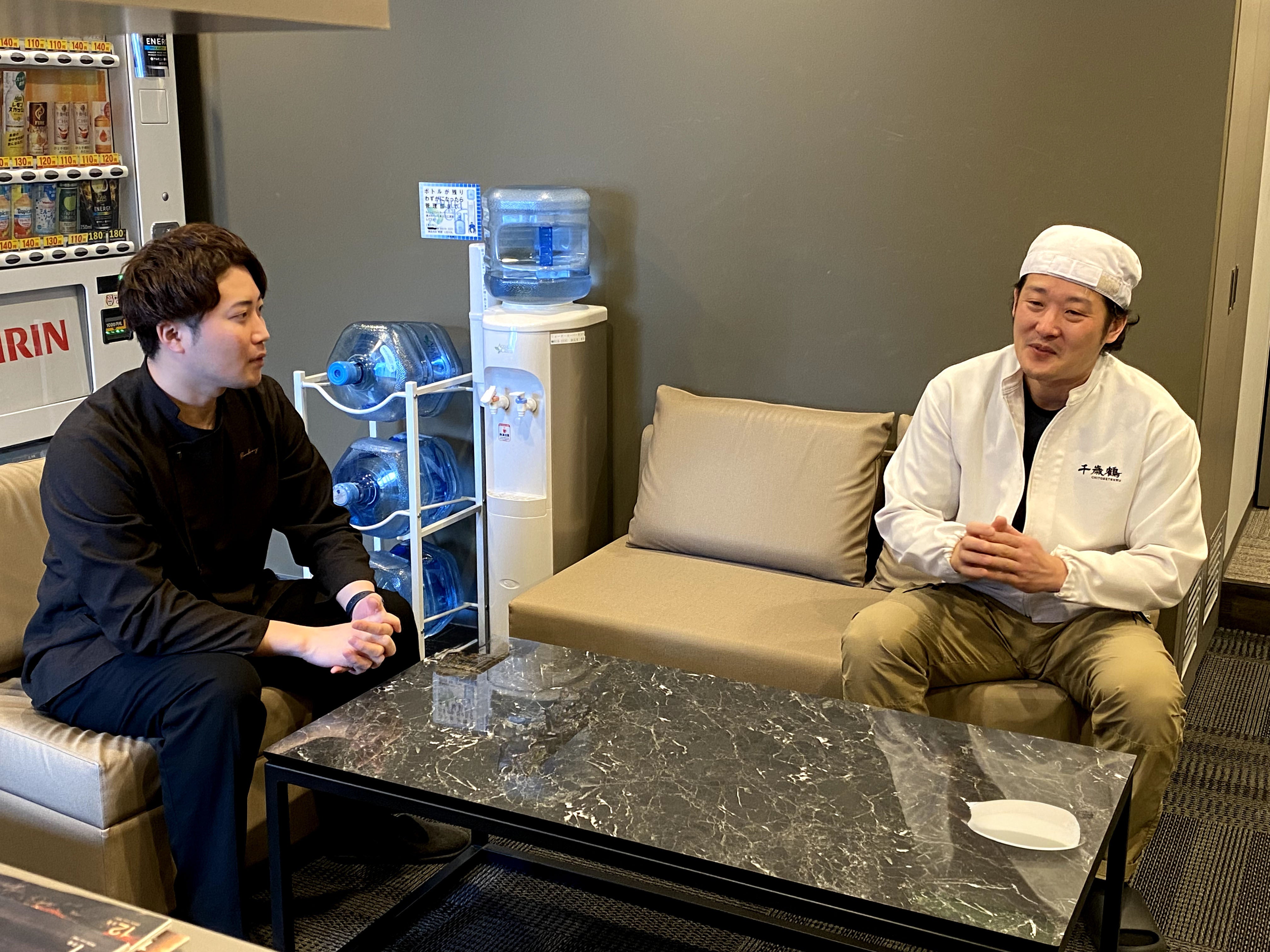 代わる日本酒を探していたタイミングで、日本清酒の七代目杜氏の竹花利貴さんに、実際にお店へお越しいただく機会が生まれます。