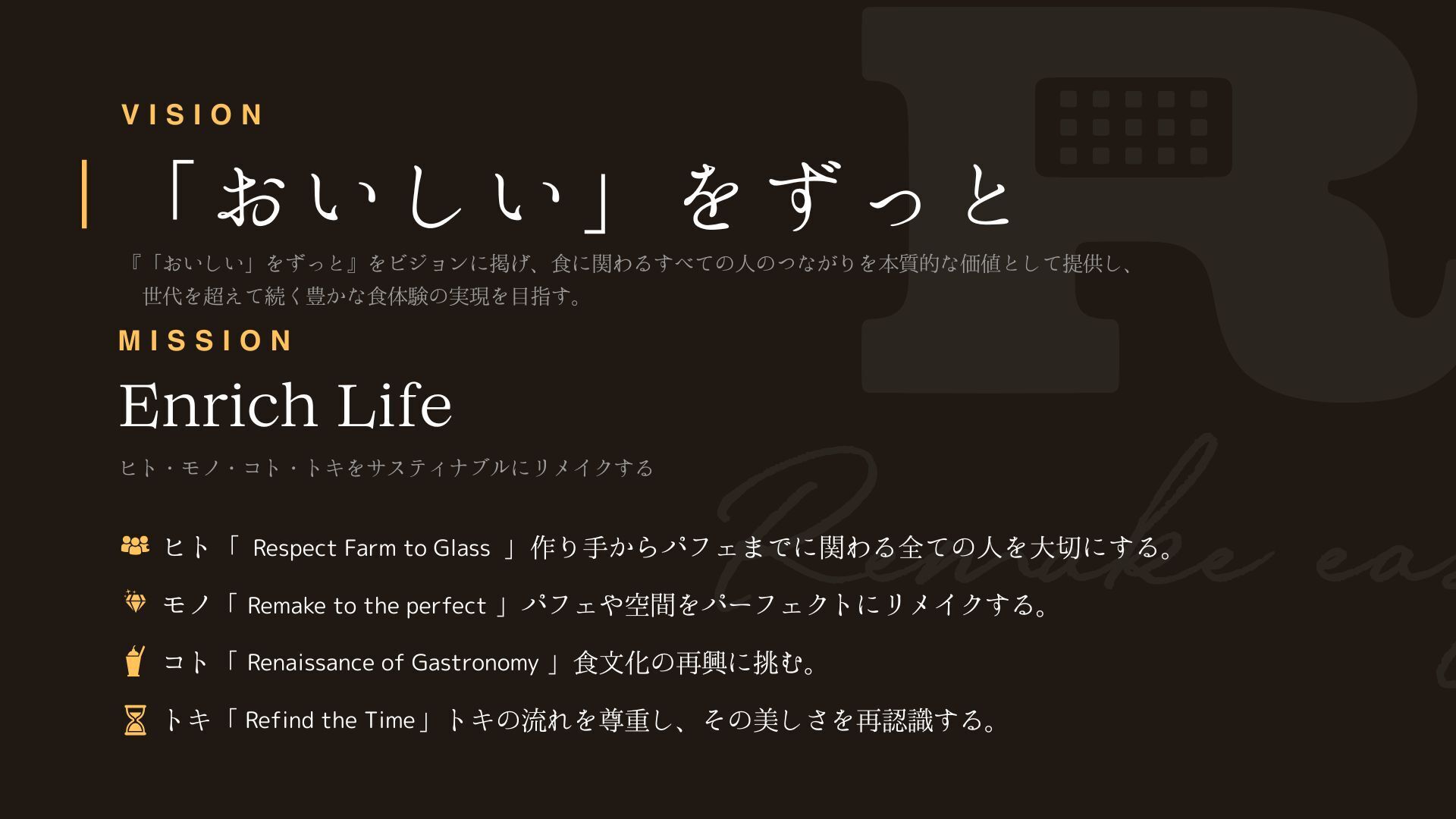 Remake easyが掲げるバリューの一つ「Respect from Farm to Glass」は生産地で栽培されている食材から、私たちの食べる一杯のパフェ(グラス)になるまで、さまざまな人の努力があり、働く人などのきちんとした体制や工程、徹底した品質管理、リスペクトが大切という考え方を指しています。
