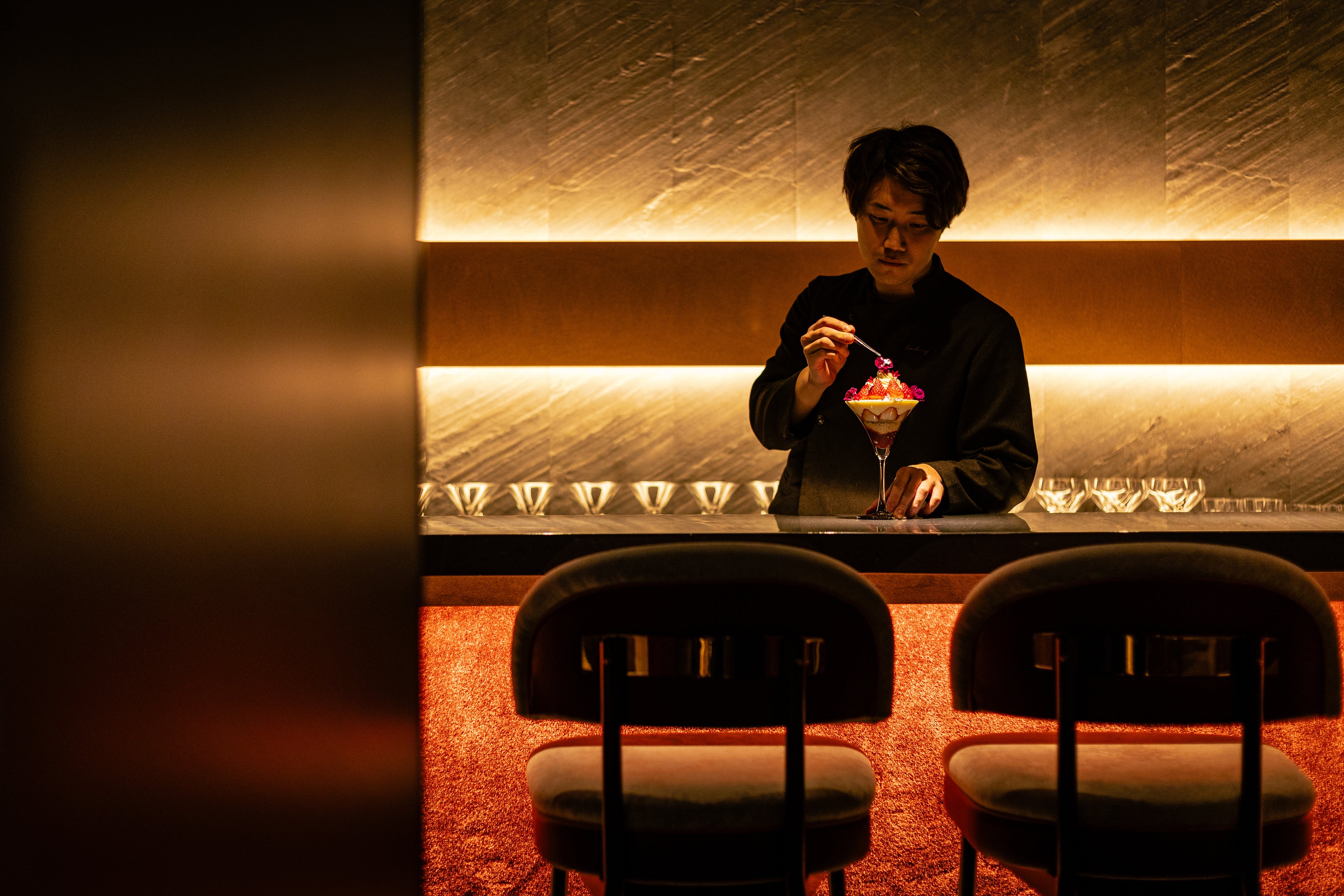 カウンター越しに目の前で仕上げられるパフェは、まさに一皿のアート。