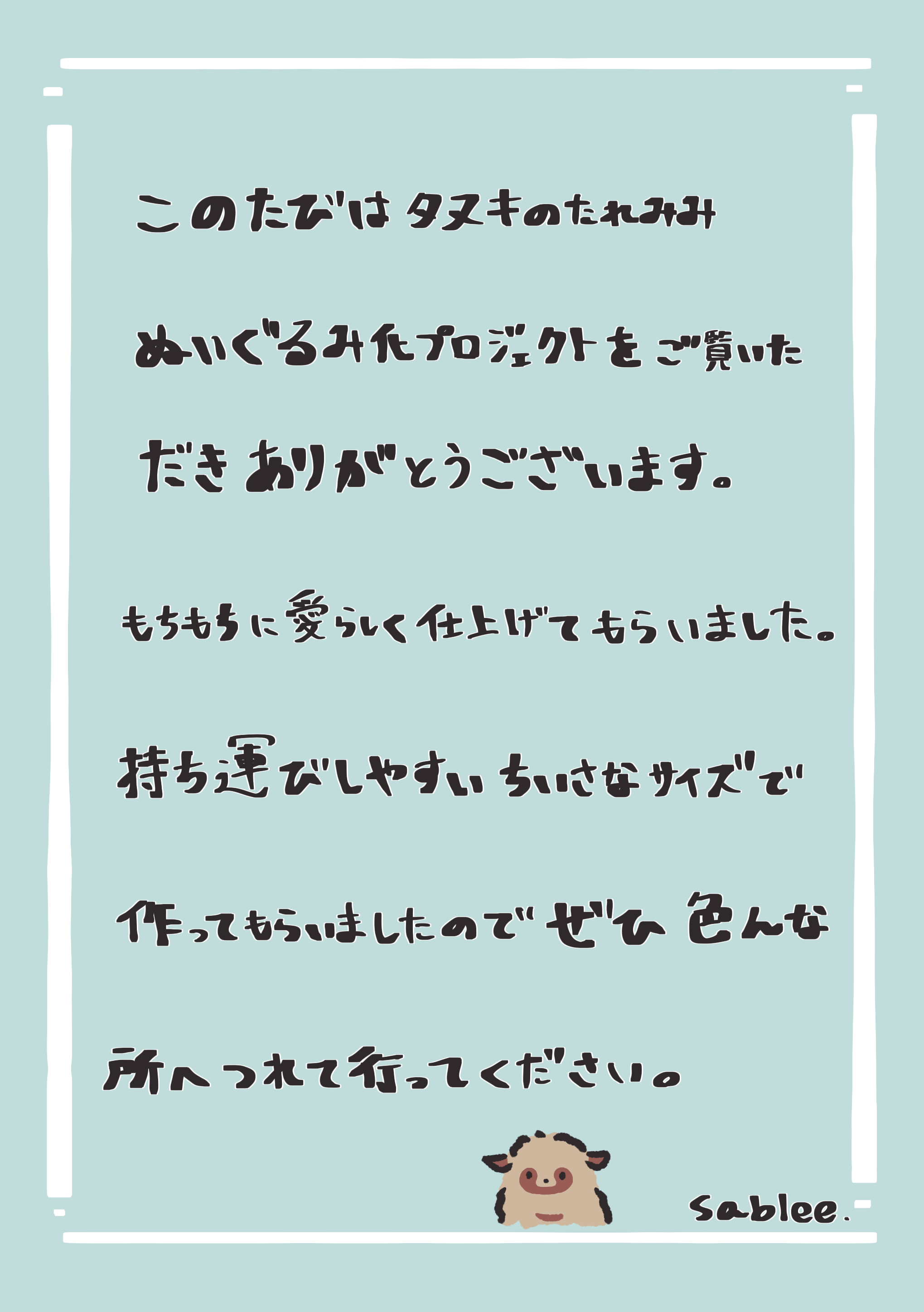 【クラファン達成しました!】タヌキのたれみみぬいぐるみ化プロジェクト