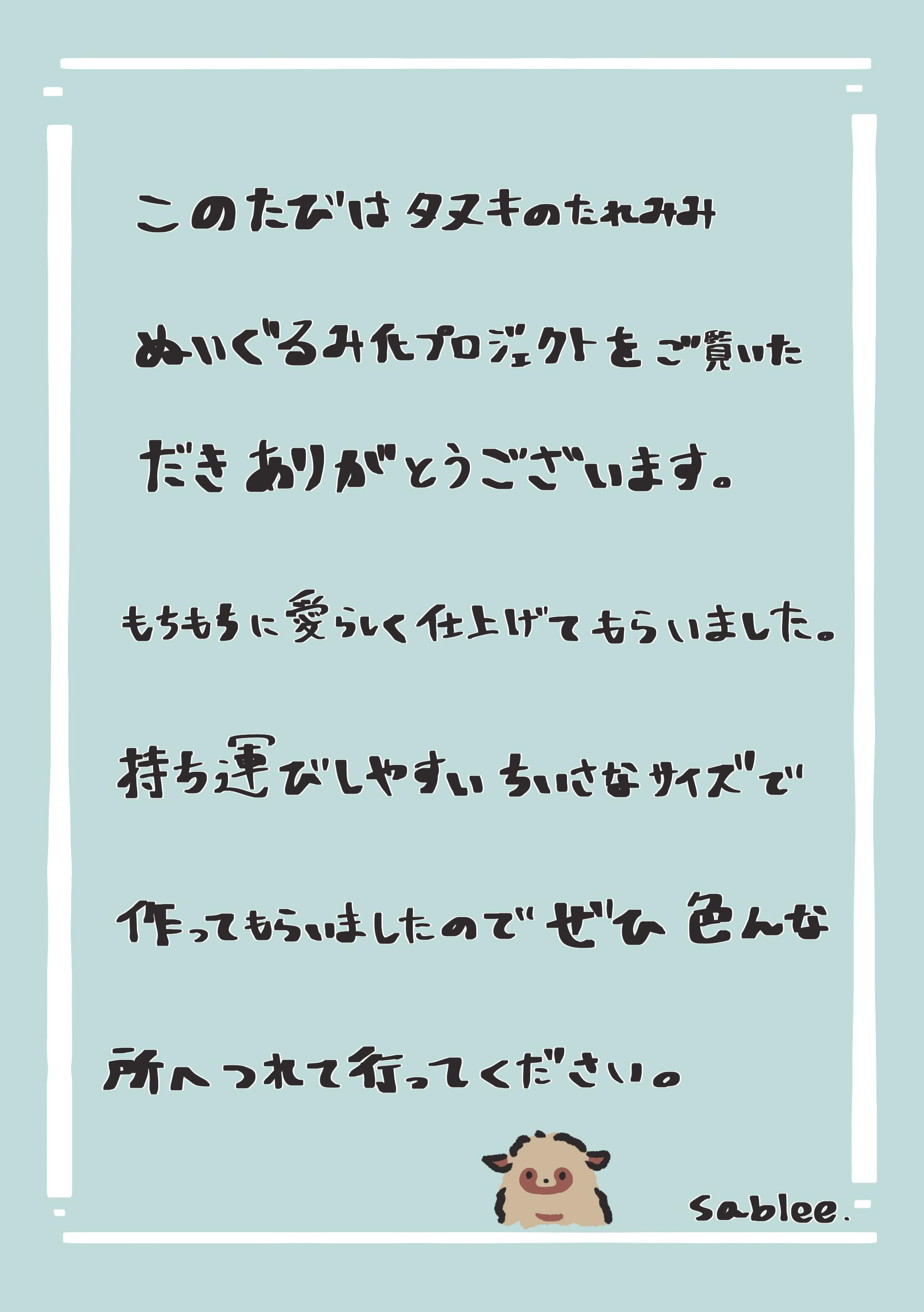 「タヌキ兄弟」の弟・「たれみみ」がぬいぐるみ化に挑戦します!
