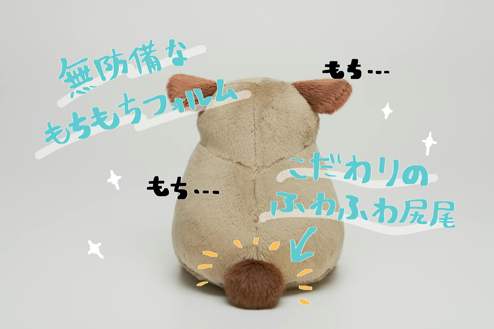 潤んだ瞳、もちもちフォルム、ふわふわ尻尾など