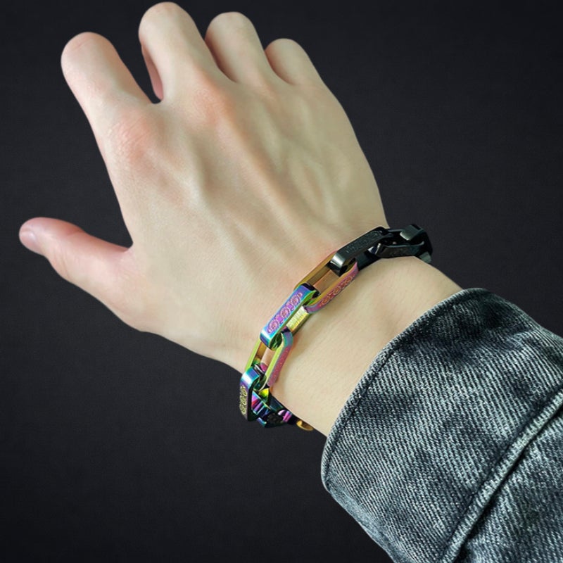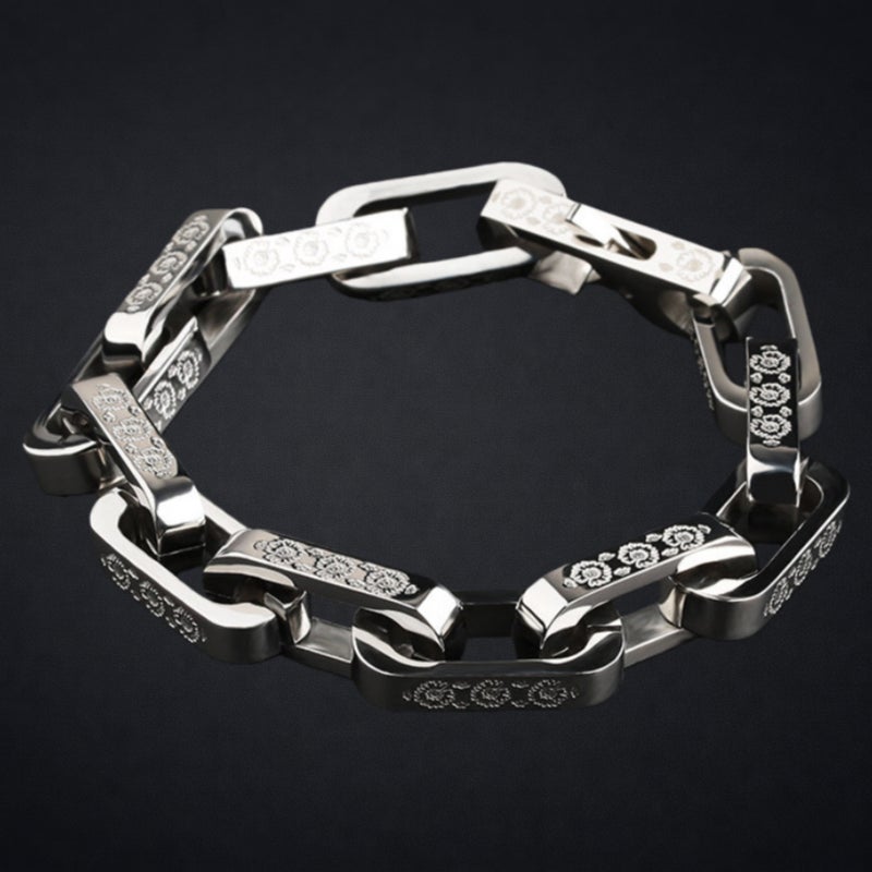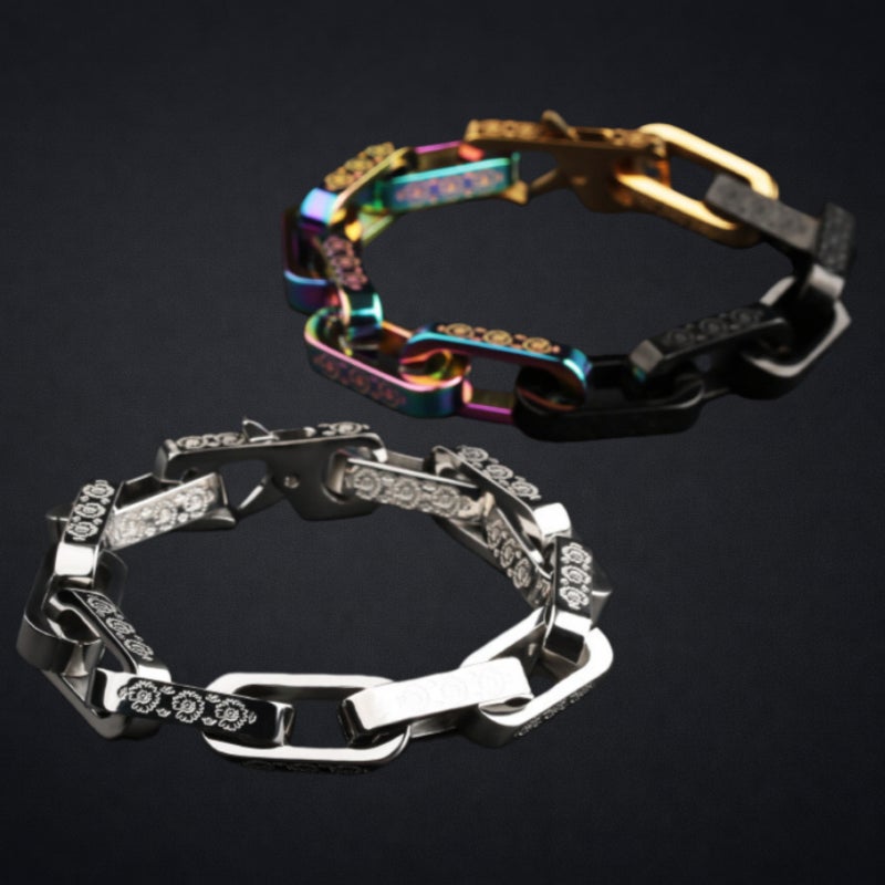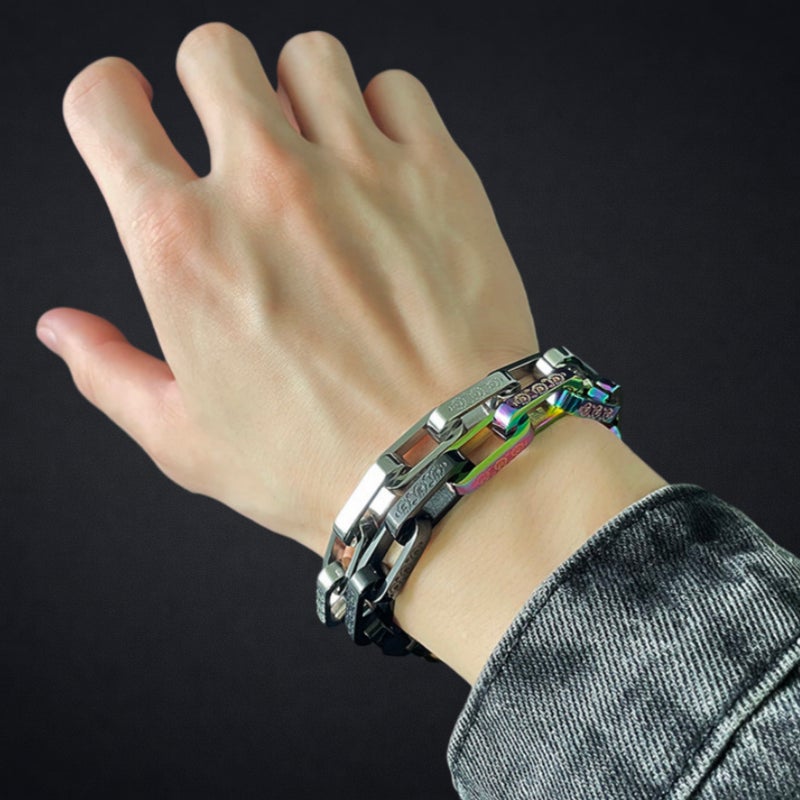 【残り1日】最後のお願いです★重厚感が手元を引き締める。チタン鋼リンクブレスレット — 存在感のあるアクセ