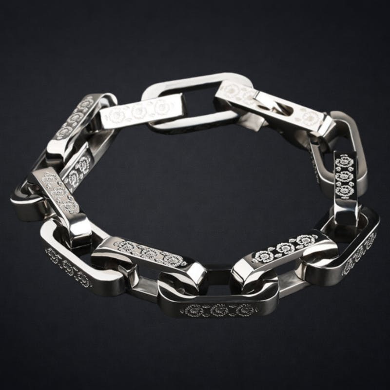 リンク構造には刻印デザインを施し、無機質になりすぎない視覚的アクセントを加えました。