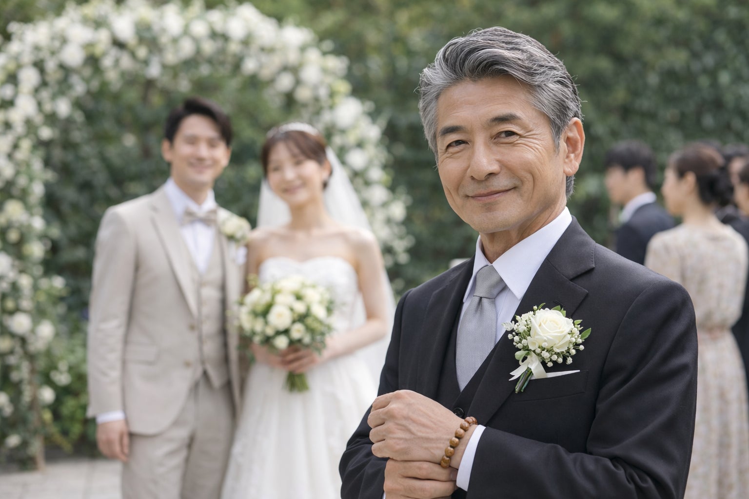 落ち着いた木素材の風合いは、フォーマルな装いにも自然に馴染みます。