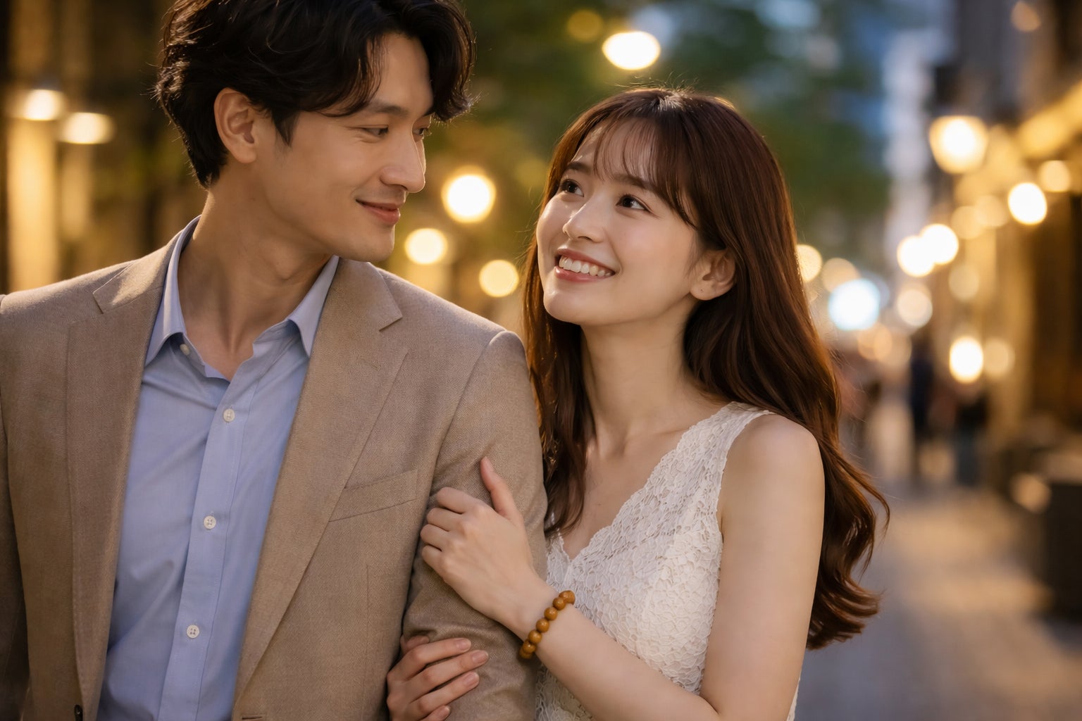 落ち着いた木素材の風合いは、休日の外出やデートスタイルにも自然に馴染みます。