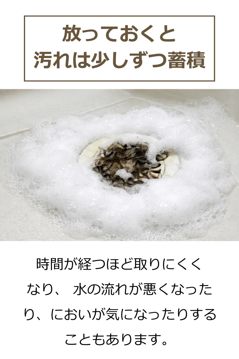 髪の毛や皮脂、石けんカスが残りにくいことで、ヌメリが気になりにくい排水口へ。