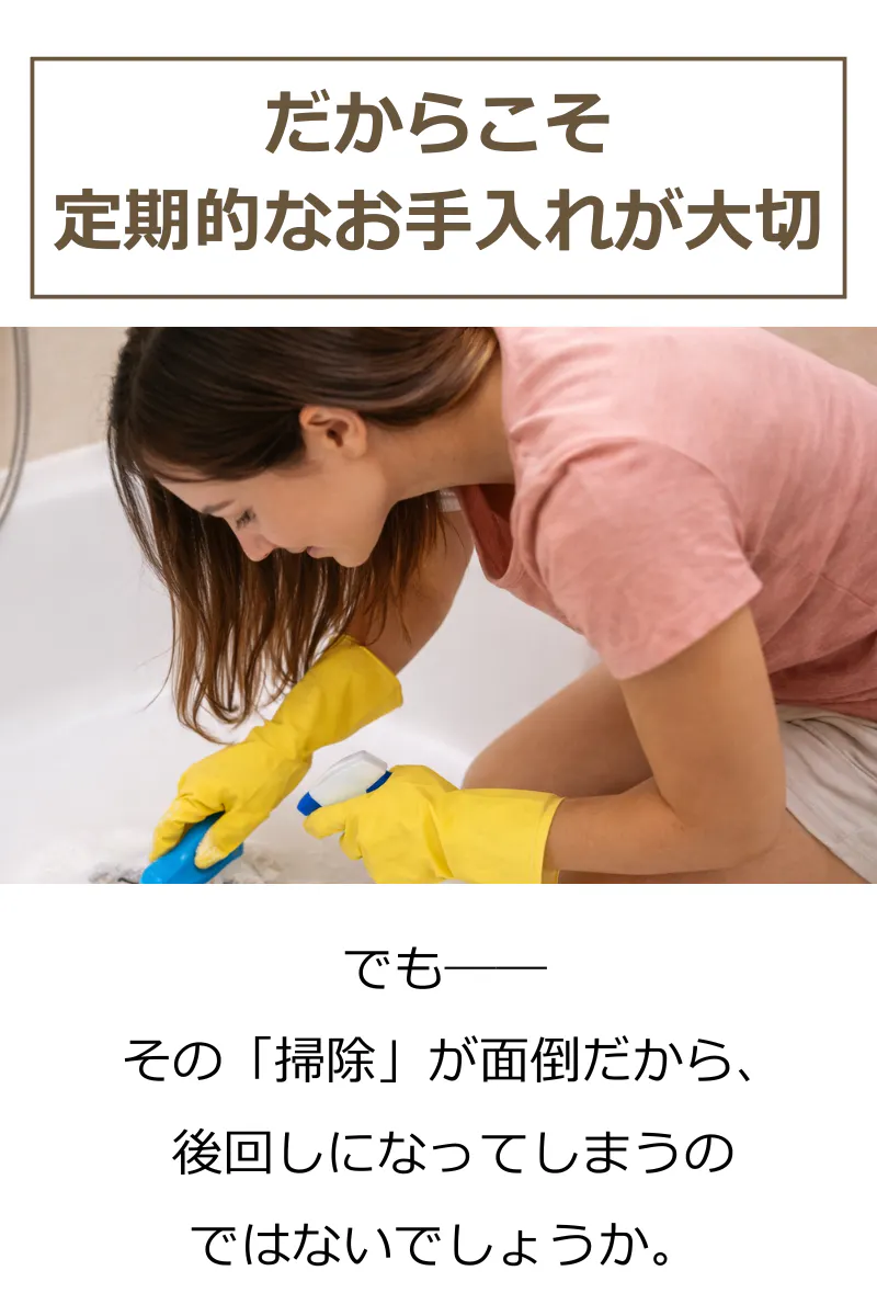 強い薬剤ではなく、表面構造から考えたヌメリ対策です。