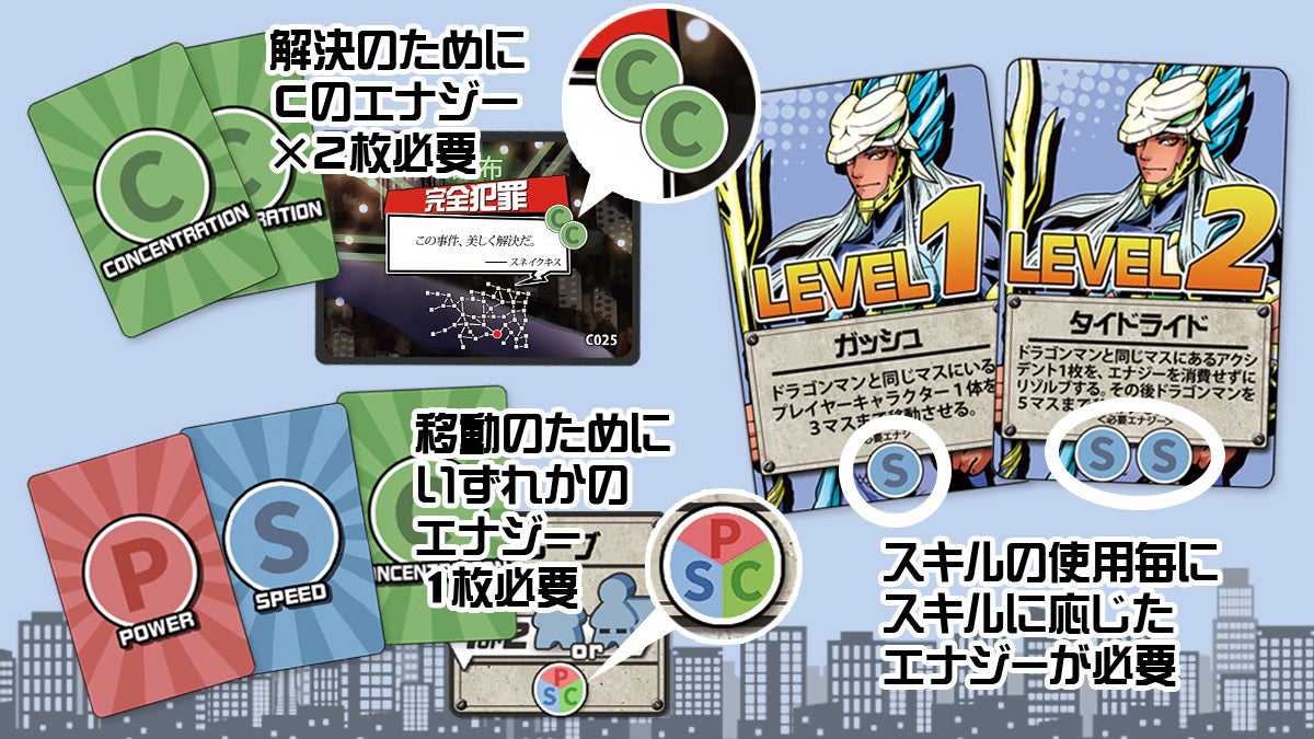 一部のアクションやスキルの使用にはエナジーカードを使用します。
