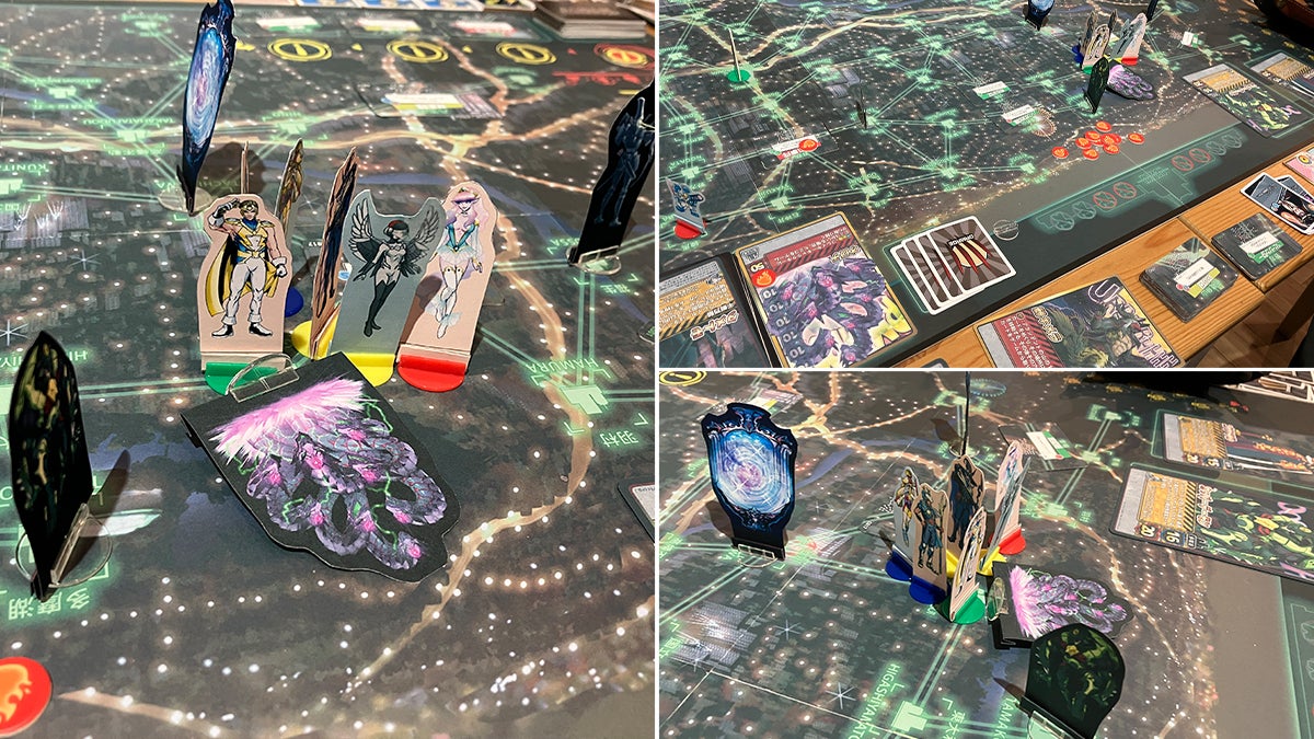 オラクルのワープなどを利用して全員集合!ファイアサファイアの「ティンクルスター:同じマスにいるすべてのプレイヤーキャラクターの手札にあるダメージを全て回復し、デッキから回復した枚数を引く」によるダメージ回復でゲームオーバーを回避しつつ、なんとか倒し切りました。