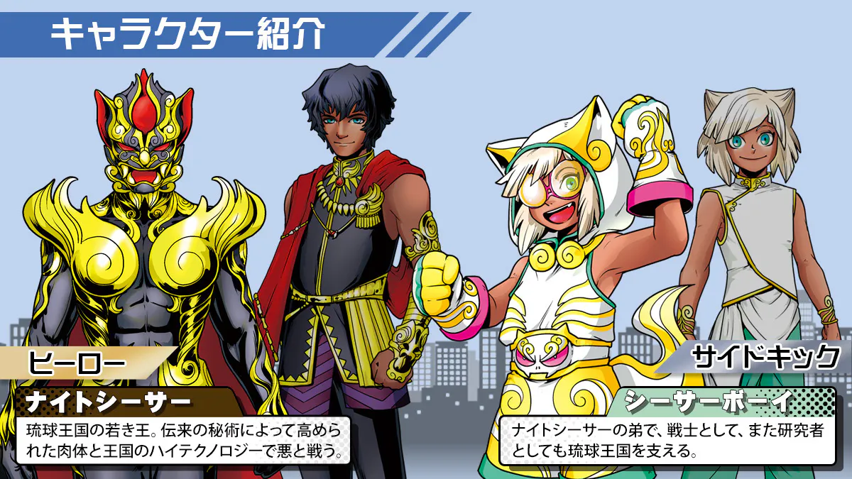 東京サイドキックは協力型ヒーローボードゲーム。プレイヤーはヒーローとサイドキックを操作し、街の至る所で発生する事件を解決していきます。その行く手を阻むのは敵であるヴィランたち。ヒーローたちにも得意な戦術があり、それぞれに因縁のあるヴィランには有利に戦えます。事件解決やヴィランを倒すと経験値を獲得!自身のキャラクターを強化できます。緊張感のある共闘戦線、仲間と相談しながら東京を守りましょう。ゲームの流れを把握しやすいので、協力ゲームが好きな方にはもちろん、協力ゲームを始めて遊ぶ方にも特におすすめの作品です!キャラクターについても随時紹介していきます。今回は海底に存在する王国「ニライカナイ」出身の二人、ドラゴンマンとシータートルです。