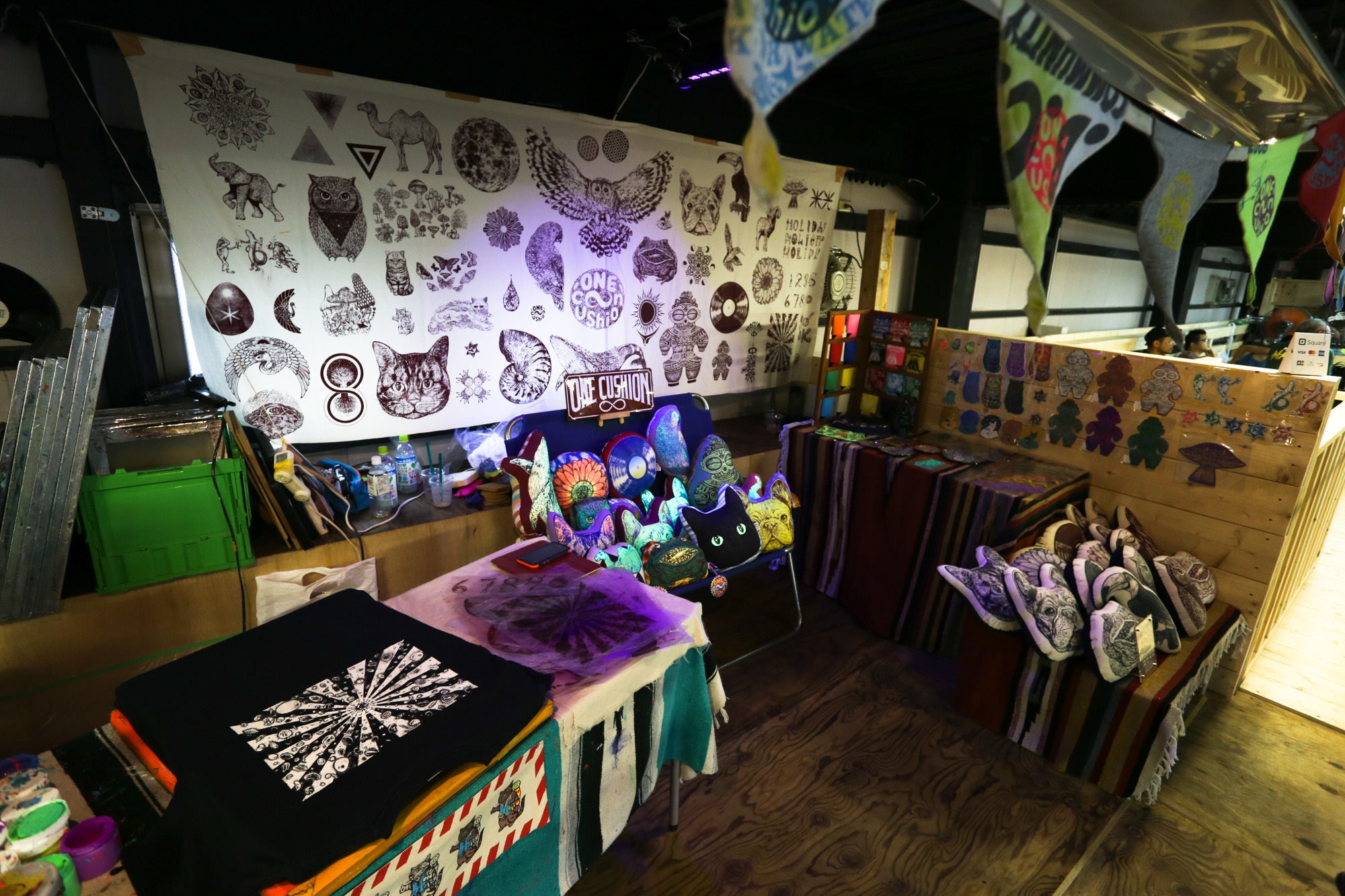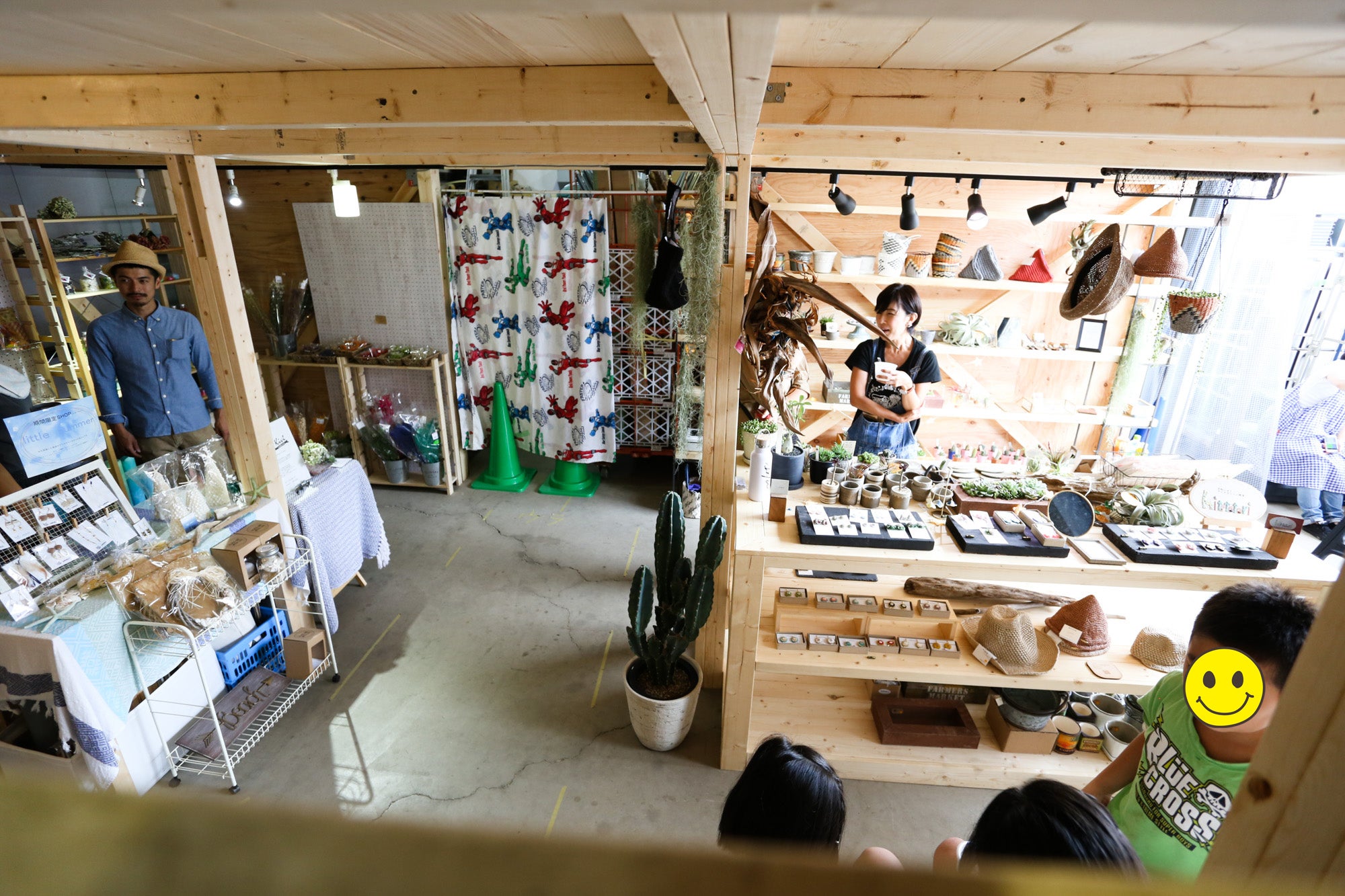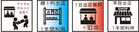 棚を用意しておりますので販売したい品物をお持ちになって並べてください。