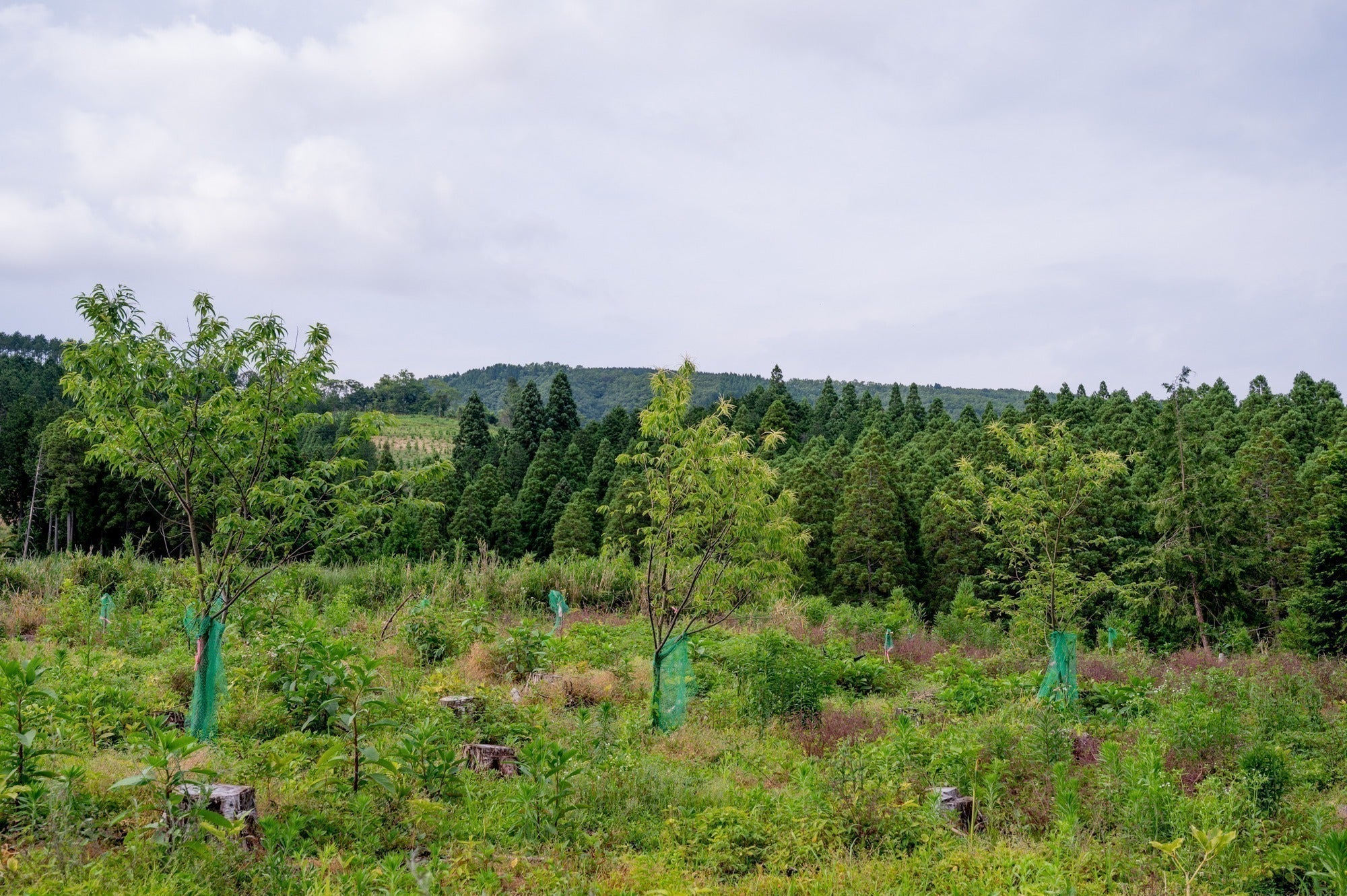 私たちがこのプロジェクトを立ち上げるに至った背景には、九州北部の山岳地帯は人工林の90%以上が杉やヒノキの植林です。