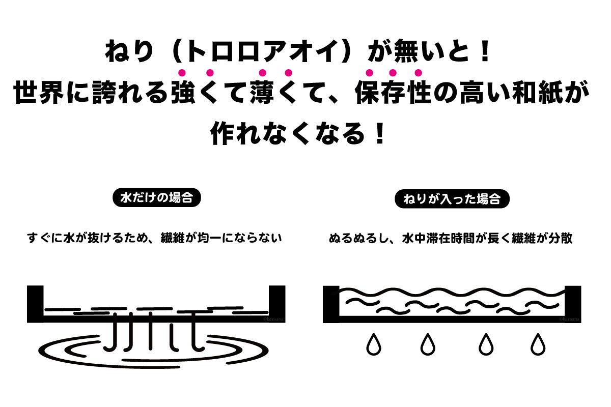 世界的に有名な美術品の修繕にも使われ、薄くて丈夫で保存性が高いことで世界的に知られている日本の和紙ですが、この薄くて丈夫な和紙を作るには、原料となる『ねり(トロロアオイ)』が必要不可欠です。