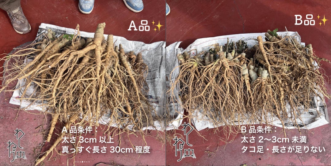 1年目はA品はたった112本でしたが、5年目は900本の根を育てるまでになり出荷※いただきました。