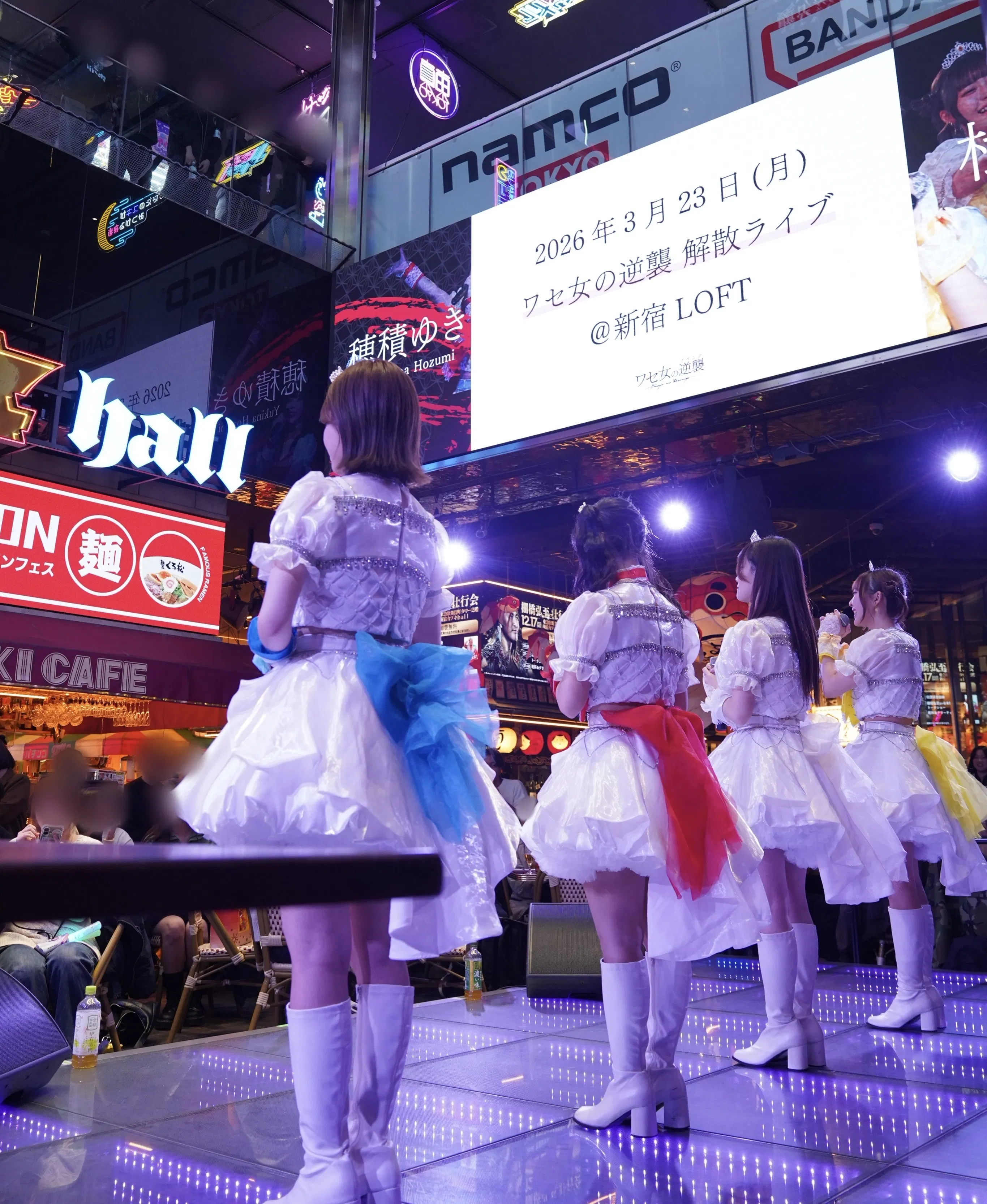 私たち「ワセ女の逆襲」は、大学生が大学生をプロデュースしている現役早稲田生アイドルグループです。2025年3月に開始したプロジェクトですが、活動は一年限定です。「ありのままで一つだけの自分を肯定する」をテーマに、アイドル活動を通して見ている人に元気と自分を好きになれるような力を届けるために活動してきました。2026年3月23日のライブを最後に解散します。