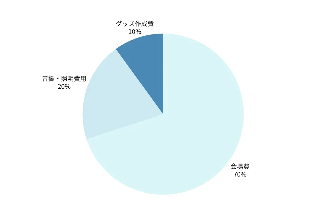 内訳:会場費‥35万円 音響・照明費用‥10万円 グッズ作成費‥5万円