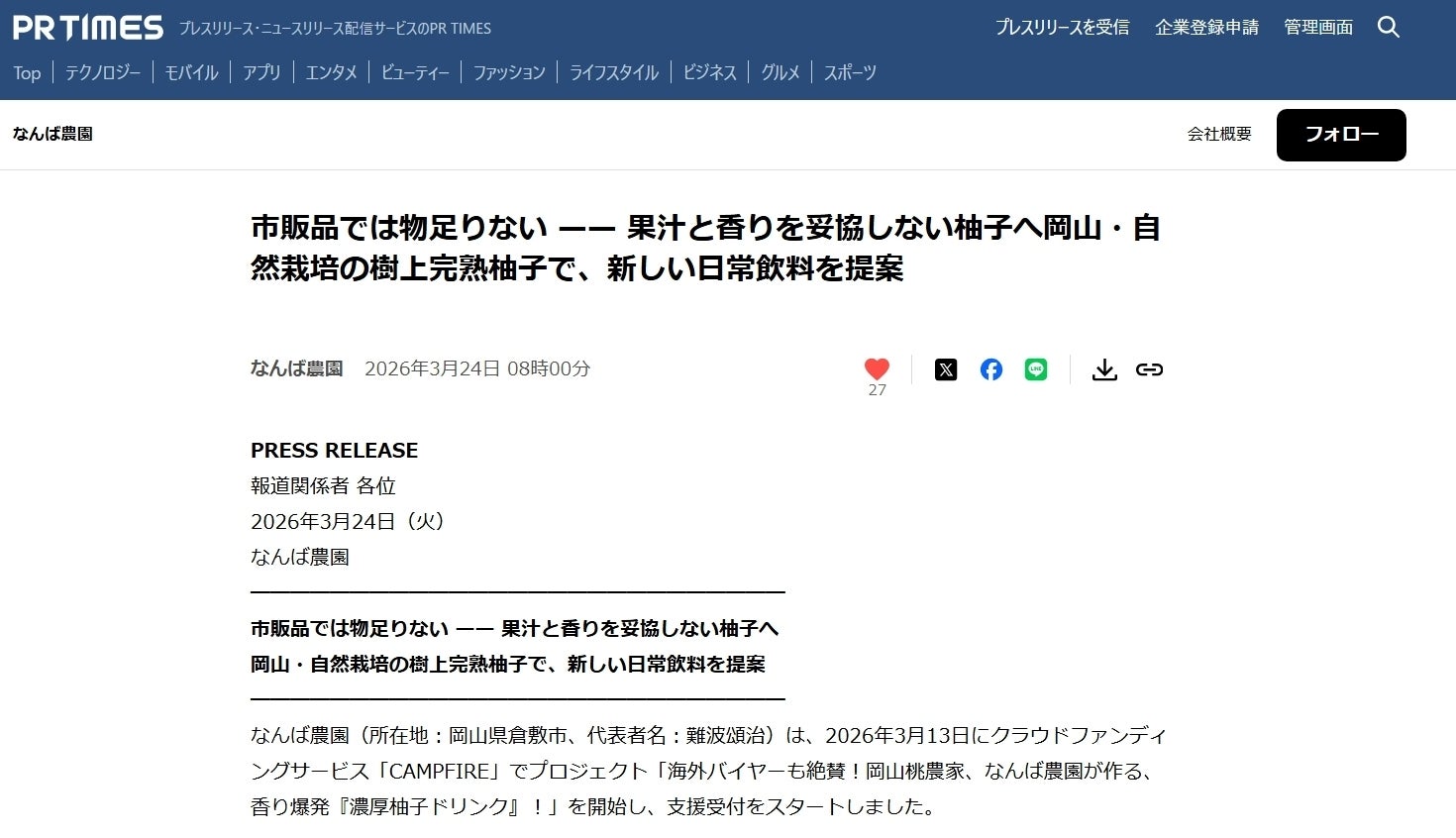 2026/03/27 16:34皆様、こんにちは!今回の取り組みについて、プレスリリースも配信させていただきました。少しずつですが、この挑戦が広がり始めています。まだまだ小さな一歩ですが、一人でも多くの方に届けたいと思っています。もしよければ一度見ていただけると嬉しいです。プレスリリース : https://prtimes.jp/main/html/rd/p/000000001.000179914.html もっと見る