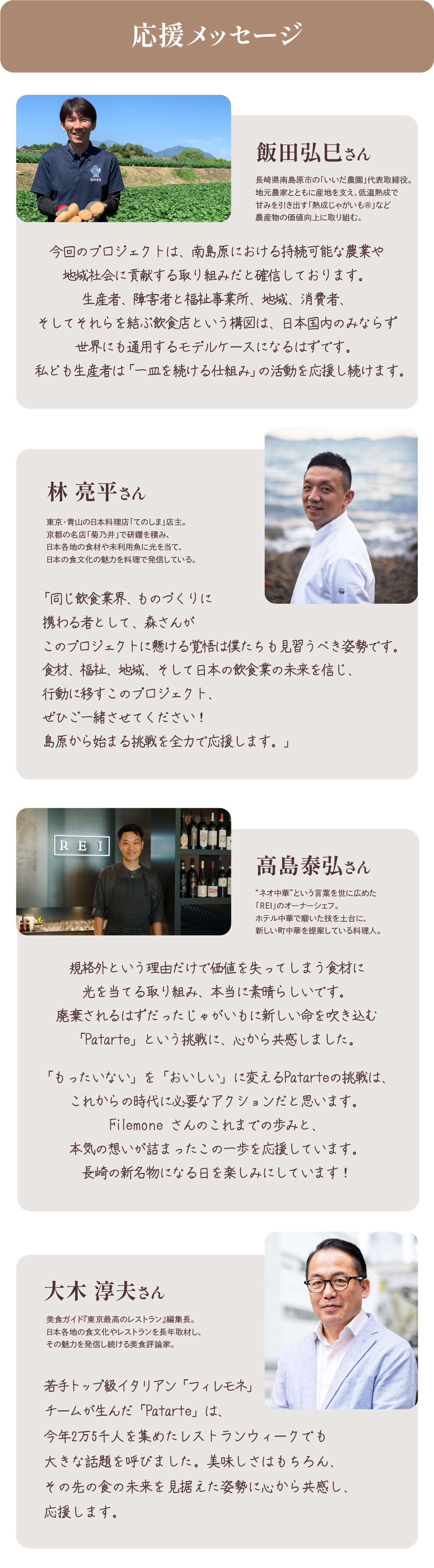 2026/04/02 08:42初日からたくさんのご支援、本当にありがとうございます!クラウドファンディング初日。初めての挑戦で、とても緊張していたのですが、初日から皆さまの暖かいご支援をいただき、ありがたい気持ちと合わせて、これからの事業の大切さを改めて強く実感しています。スタッフ一同、身が引き締まる思いです。今後は、加工体制の整備やECサイトの構築を進め、より多くの方に届けていきたいと考えています。そのため、ネクストゴールを設定し、引き続き挑戦を続けていきます。また、これからは新店舗の様子なども、随時お届けしていきます。改めまして、この度は温かいご支援をいただき、誠にありがとうございました。引き続き、応援いただけますと幸いです。 もっと見る