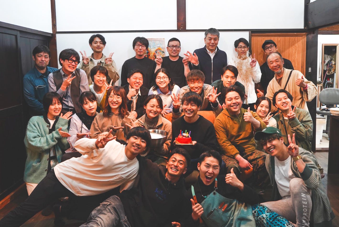 完成披露会にはたくさんの方々が集まってくれました。地域のお世話になった方々、ドッキリで内緒に来てくれた全国の仲間、ヒッチハイクでここまで来た旅人、いろんな人種がこの宿に集結。