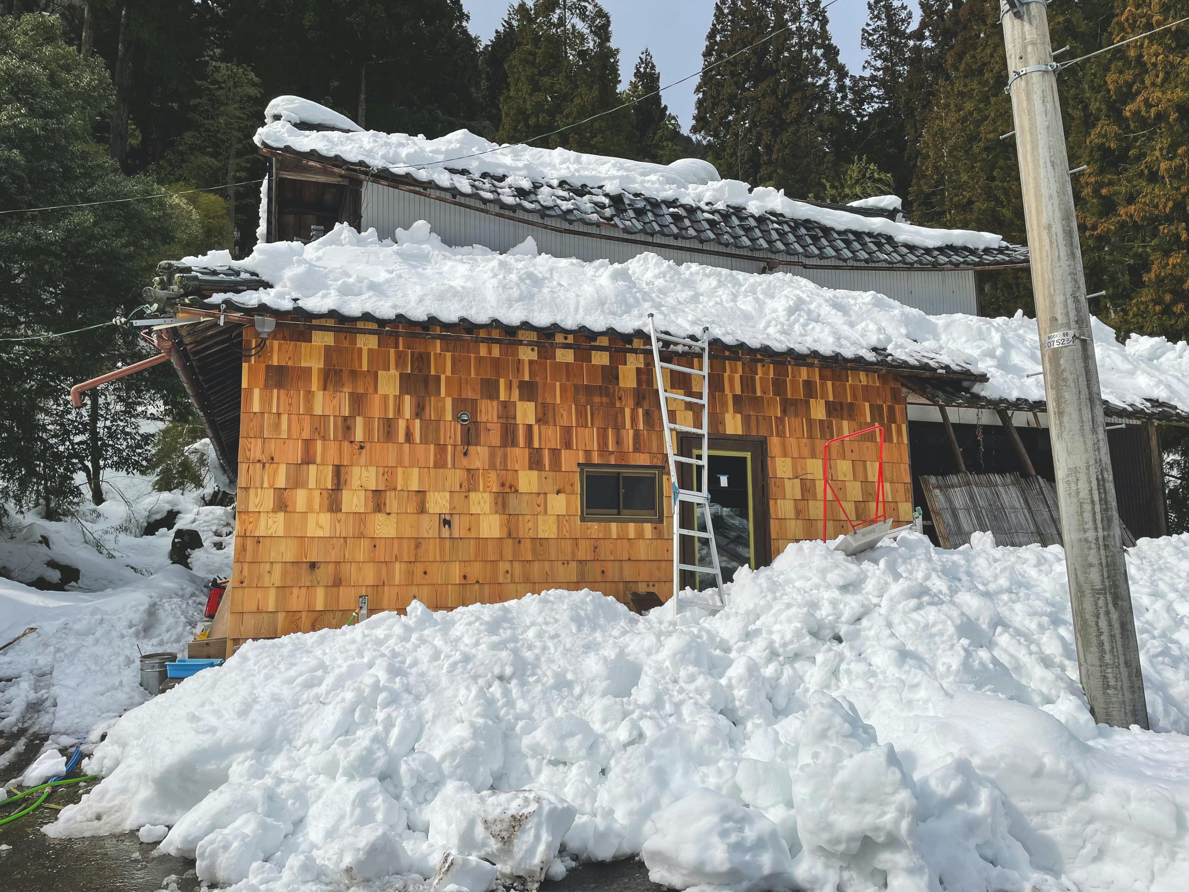 今年の冬、大雪で改修している古民家の屋根が折れました。大きな音がして、外に出ると、屋根が沈んでいました。