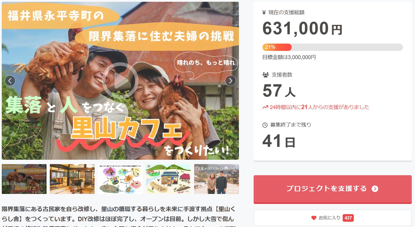開始から2日で、目標の20%を達成することができました。応援してくださったみなさん、本当にありがとうございます。残り41日、できることはなんでもやって、最後に必ずみなさんと笑い合いたいです。