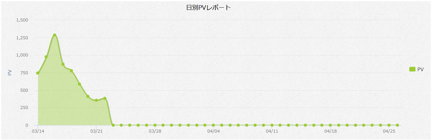 PV数。開始2日目に最高PV1,250を記録するも、昨日は400PV。完全に下降気味です。